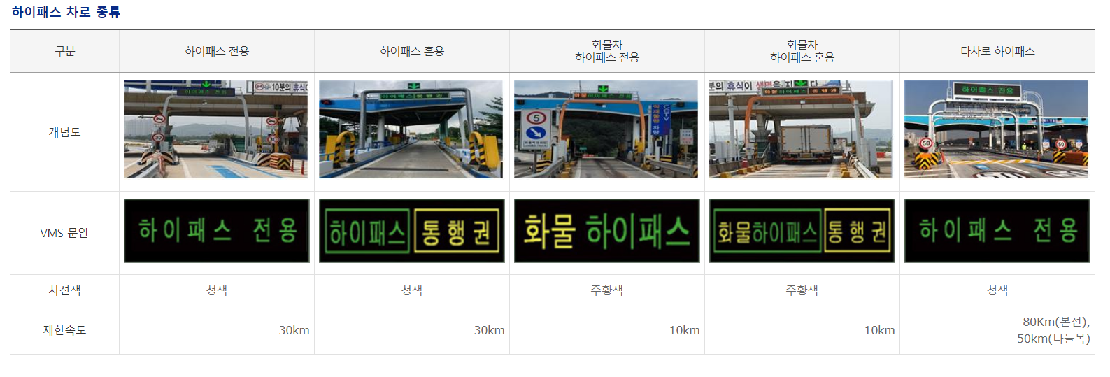 단, 단차로 하이패스 통과속도는 30km // 다차로 하이패스 통과속도는 50~80km 가 원칙이나