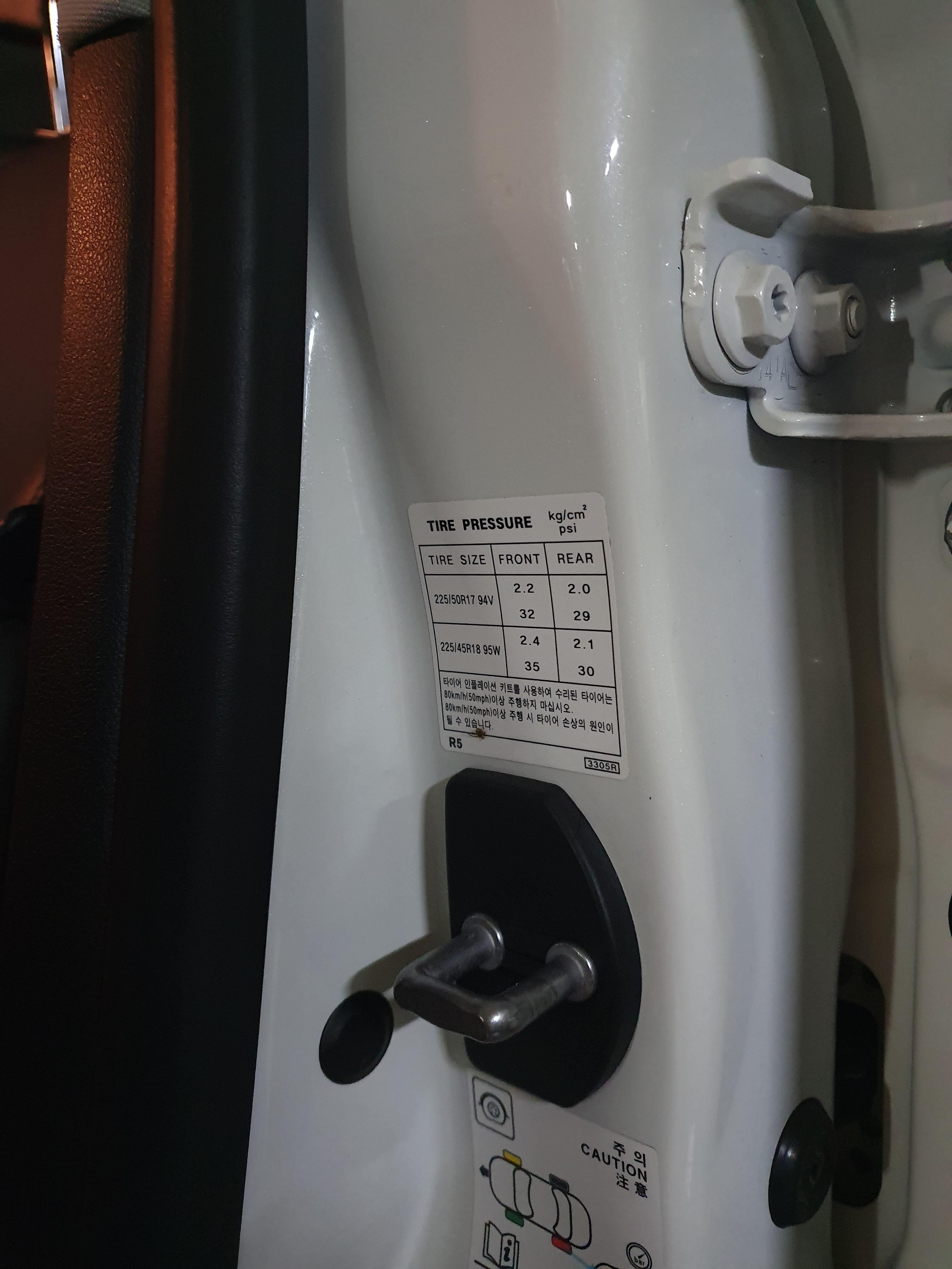 아래사진처럼 차량의 적정 공기압이 적혀 있는데..