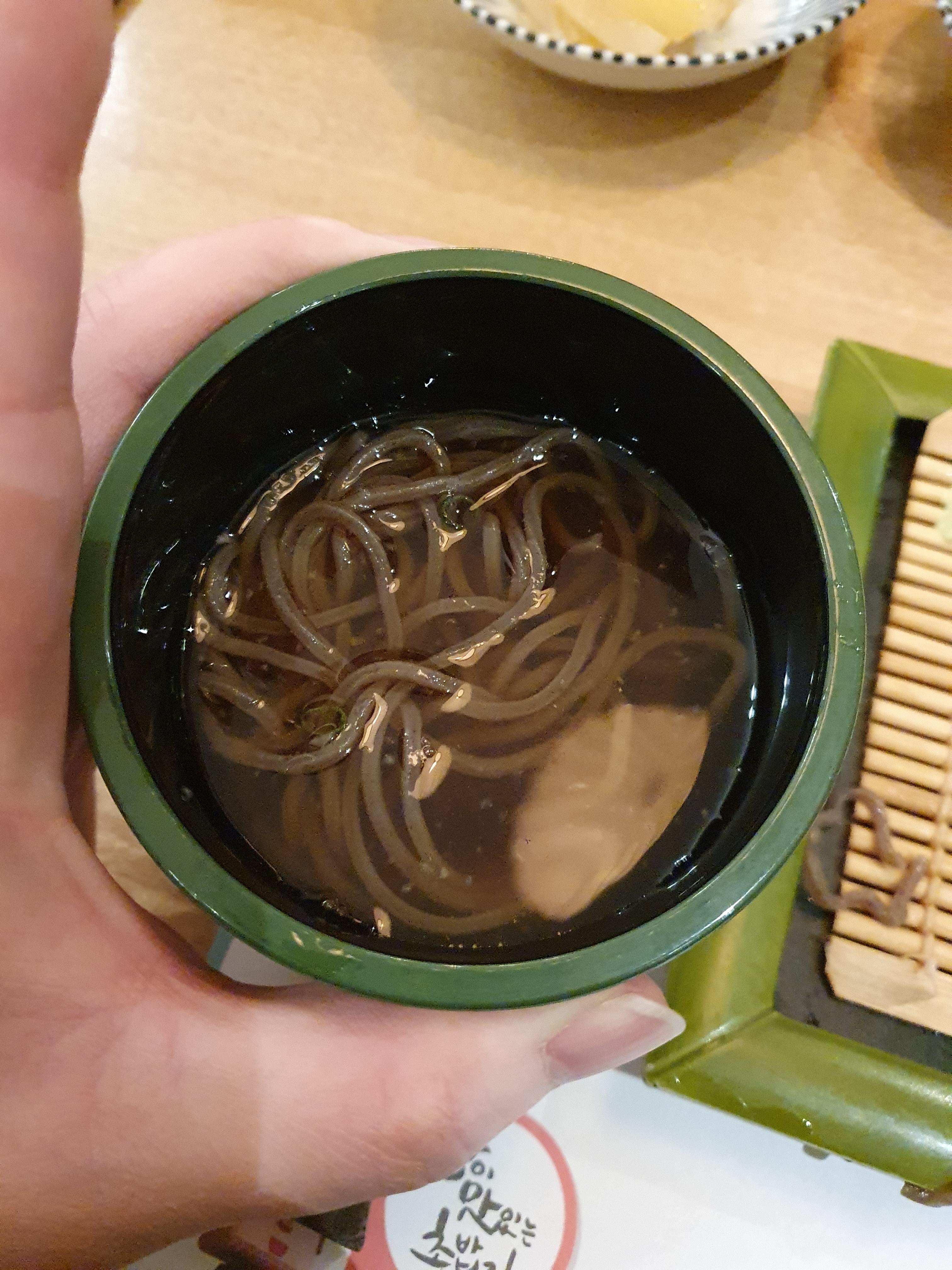 소바육수가 살얼음이 동동 떠져 있어서,