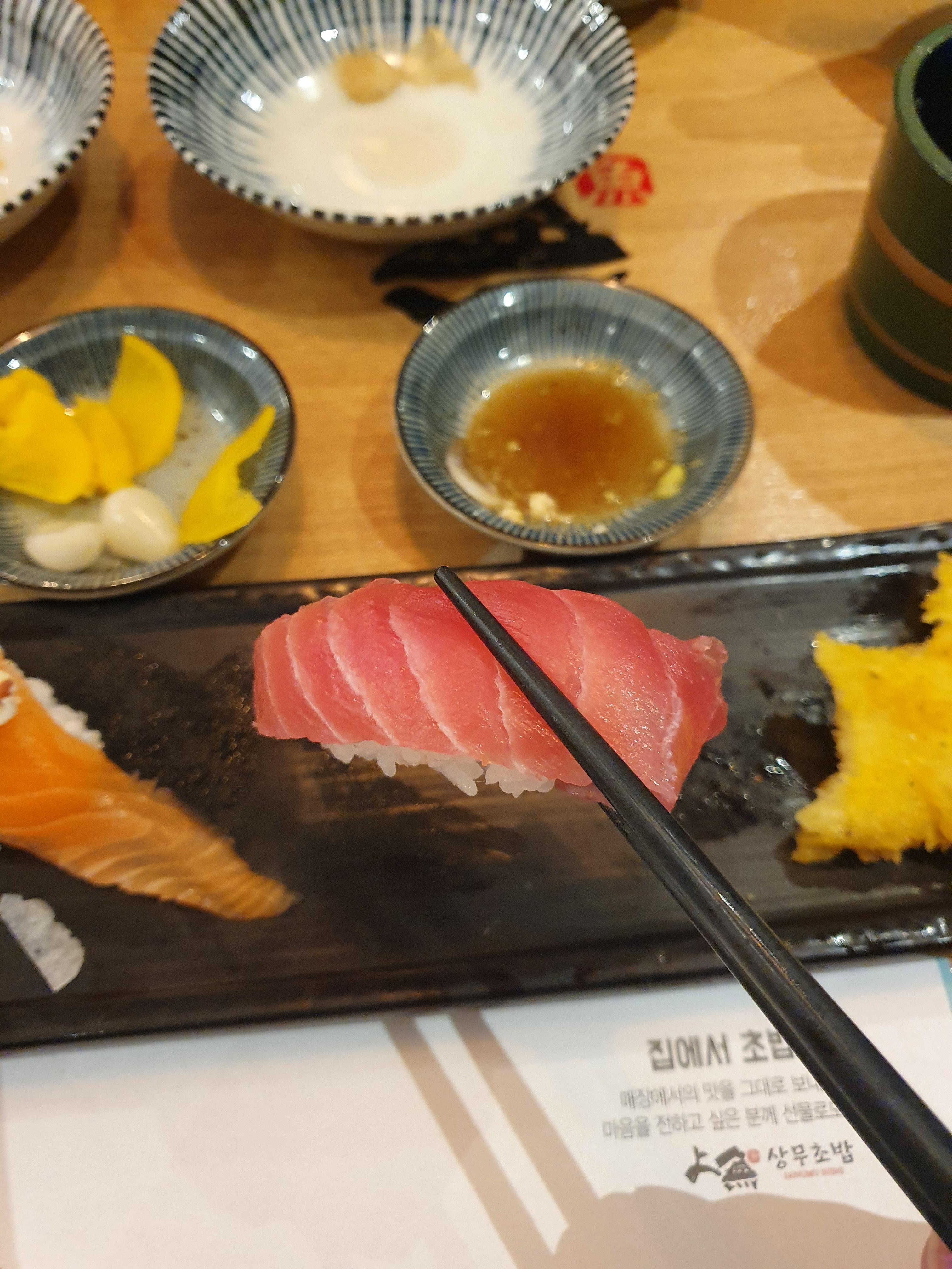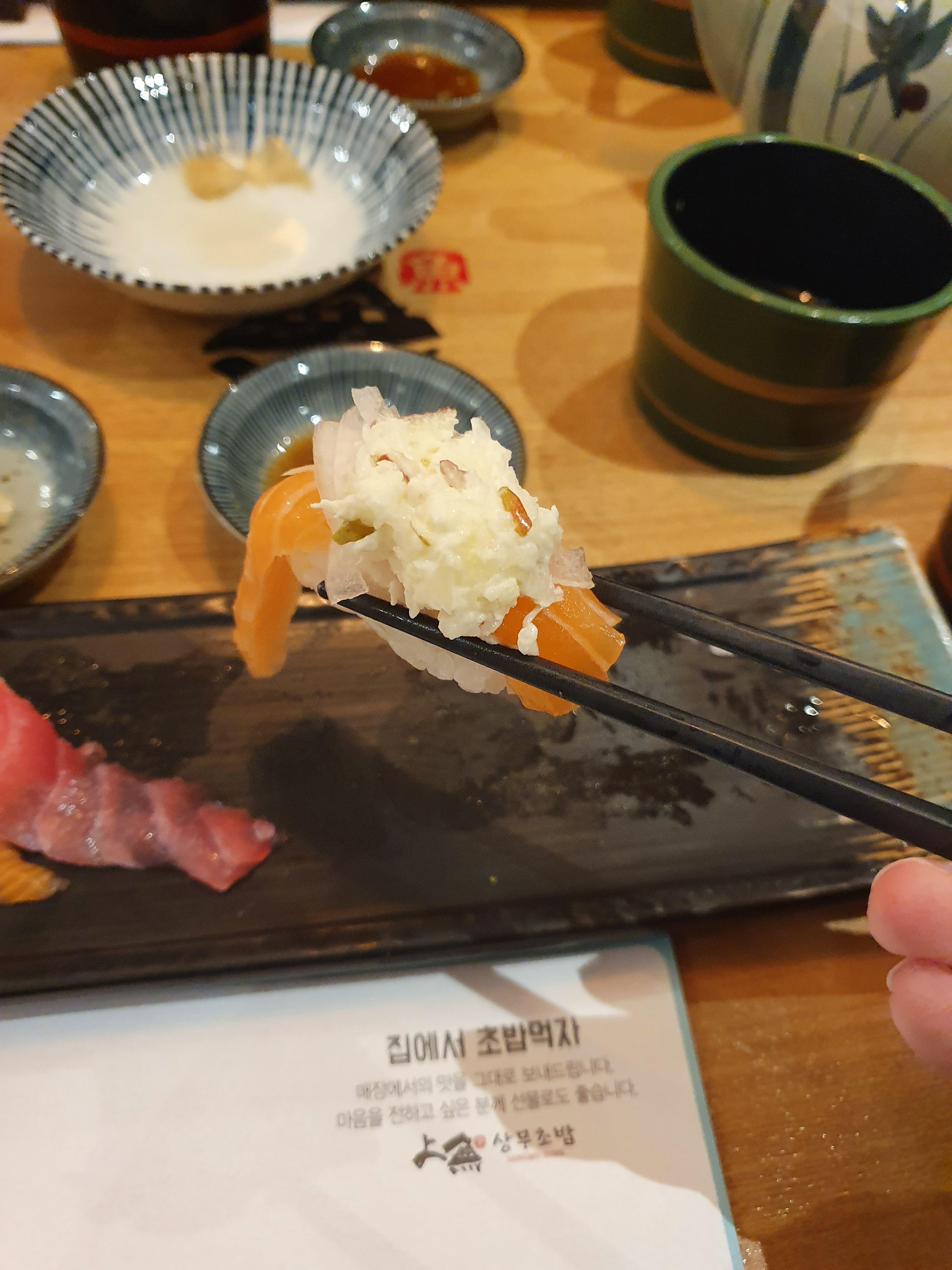 초밥이 많이 시거나 그렇진 않았구 적당한 신맛이 나서 먹기 좋았습니다.