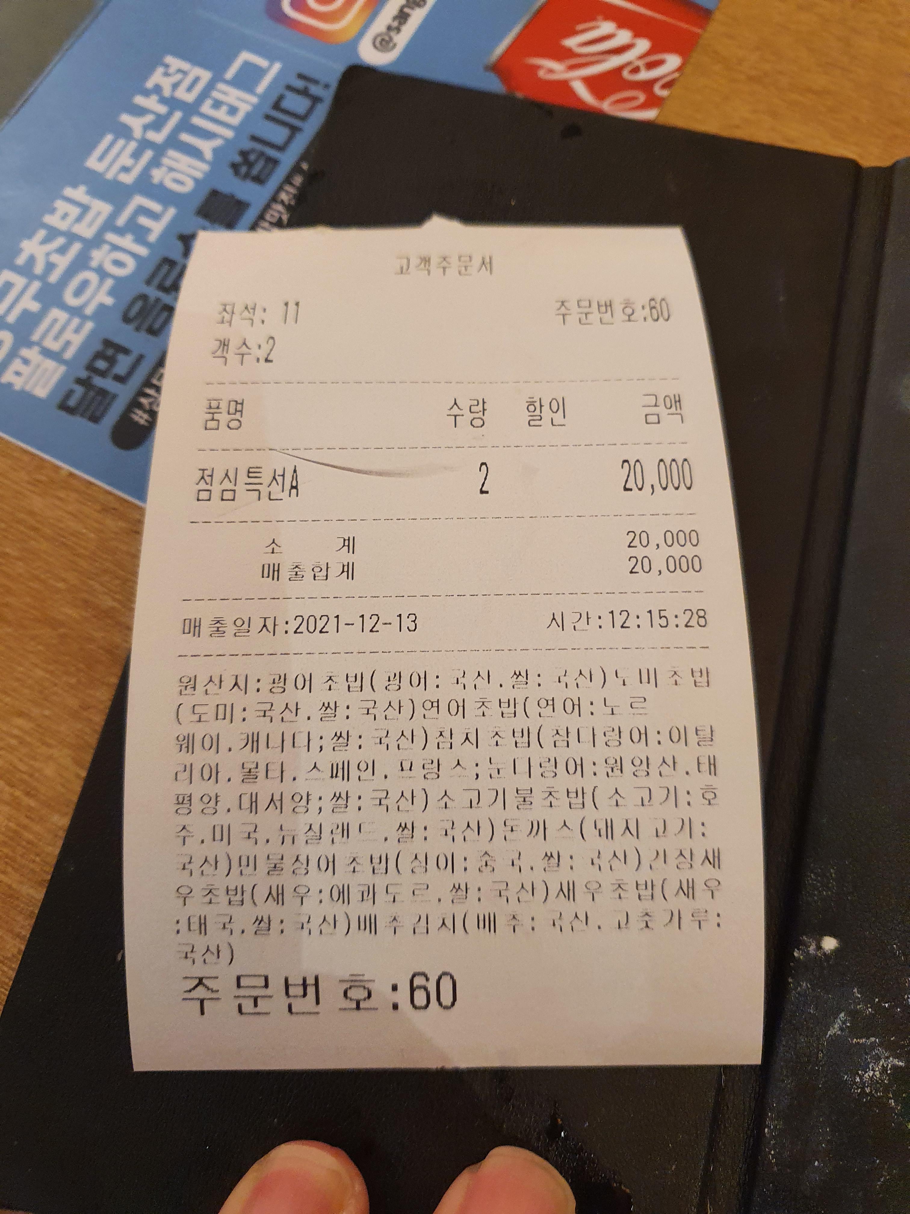 가장 많이 먹는 1만원 짜리 점심특선A를 시켰습니다.