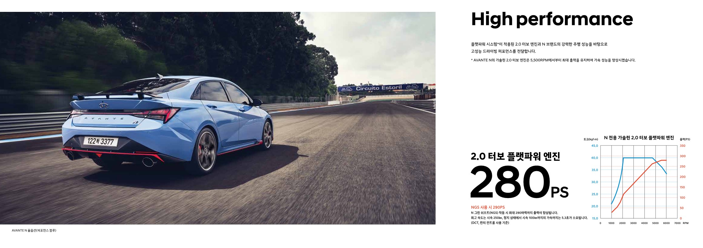 우선 아반떼 N 같은 경우는 엔진 뿐만 아니라, 브레이크 변속기 등이 전부다 고성능에 초점이 맞춰져 있으며,
