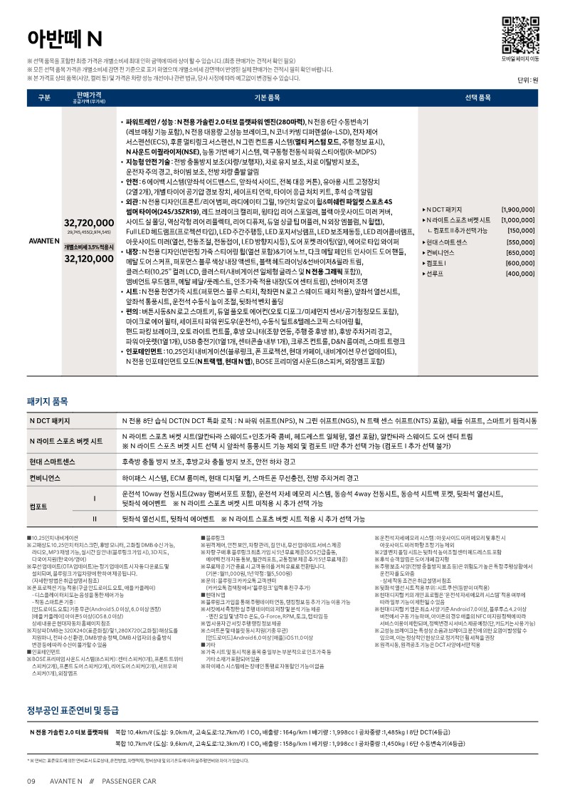 우선 아반떼N의 공식카달로그를 보겠습니다.