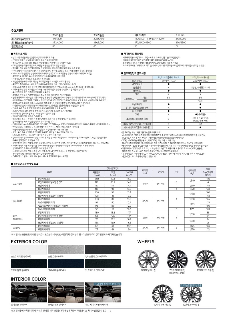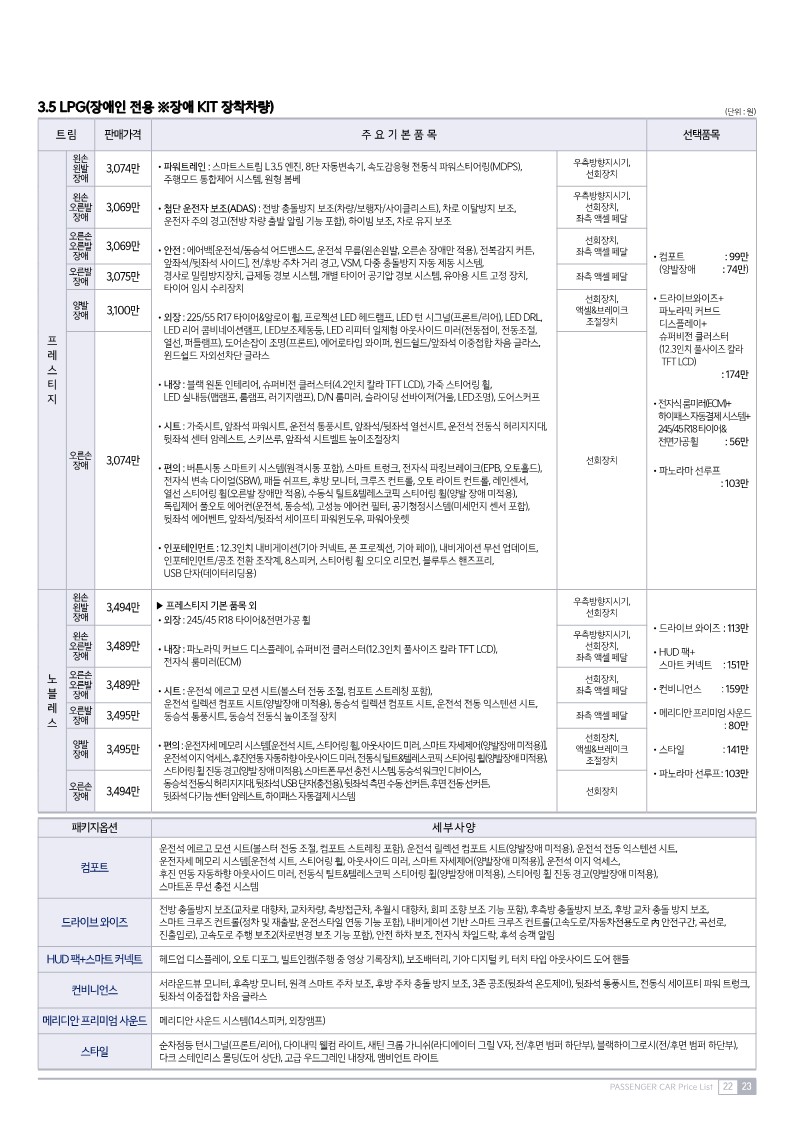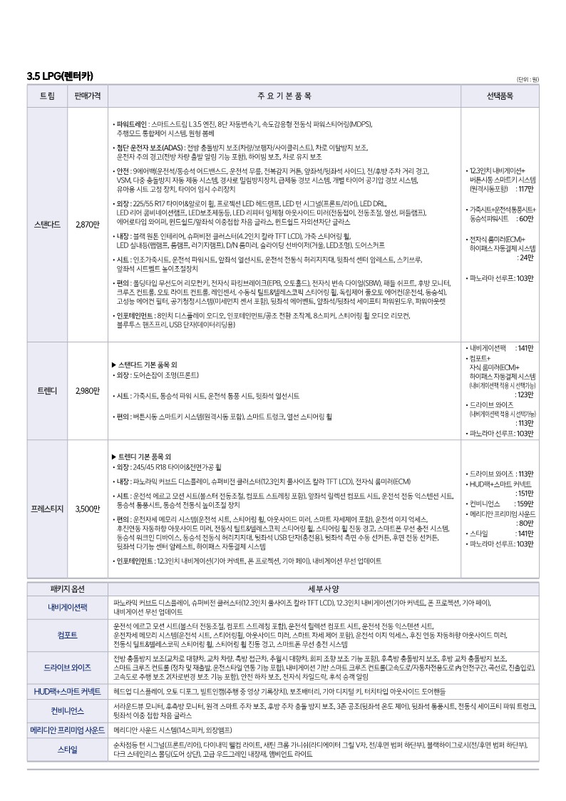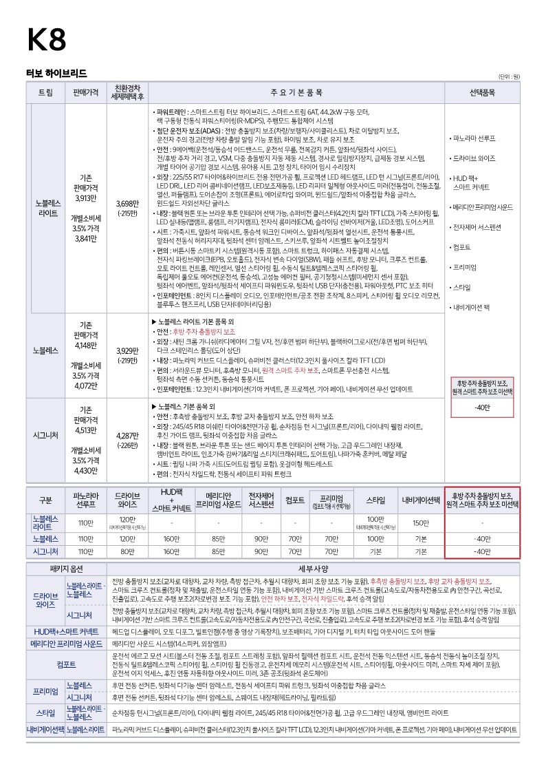1. KIA K8 가솔린, LPI 가격표 및 카달로그