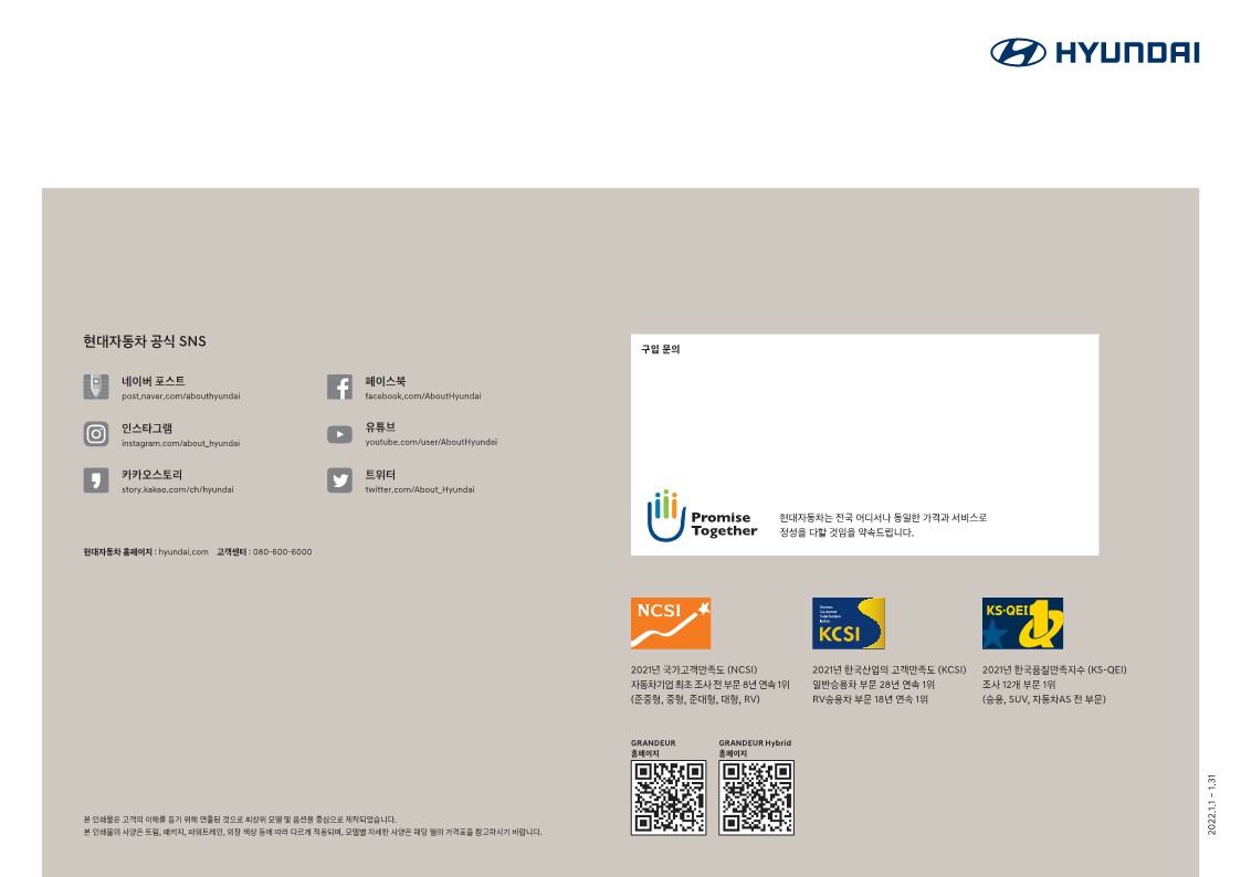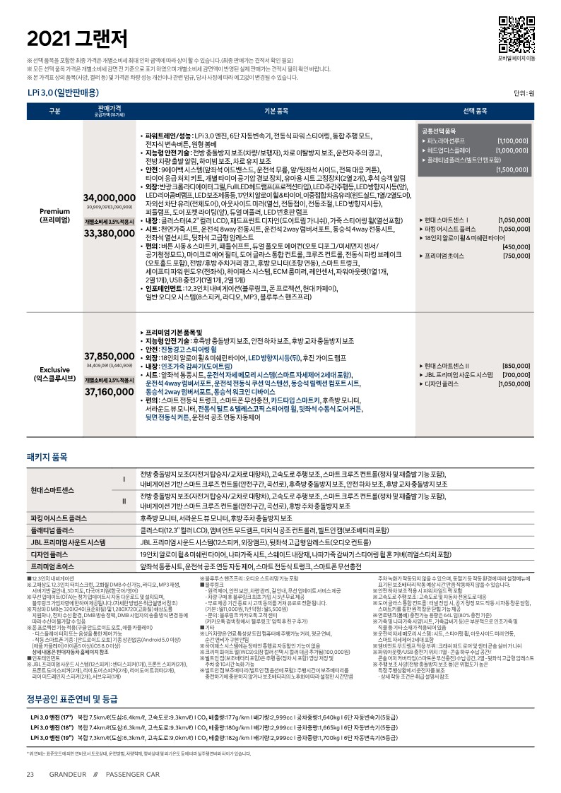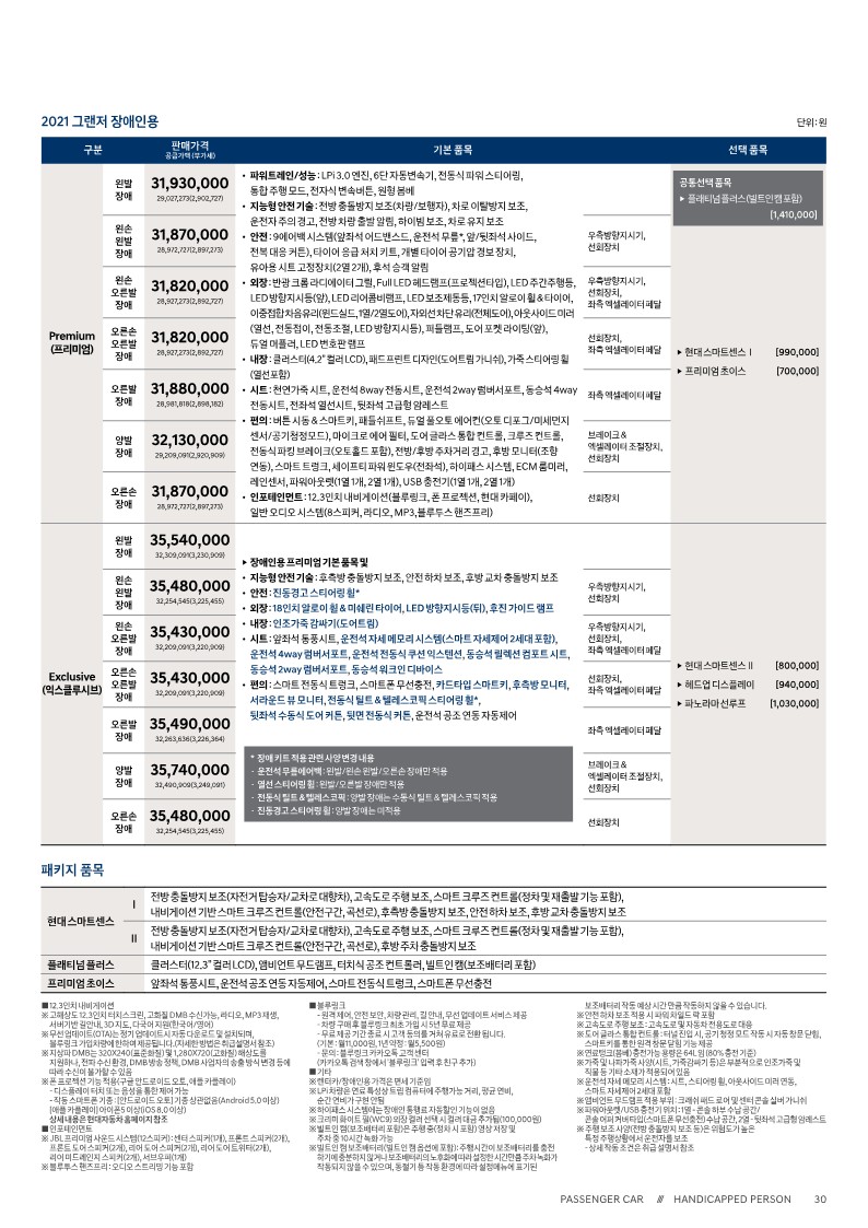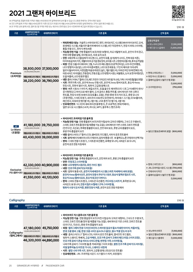 2. 그랜저 하이브리드 가격표 및 카달로그 *2022.01. 기준