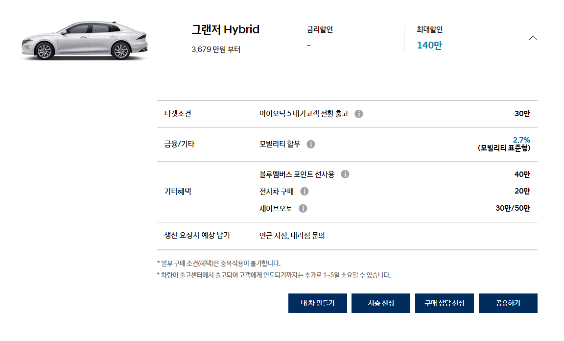 이번 2022년 1월 그랜저의 판매혜택은 뭐가 있는지 봅시다.