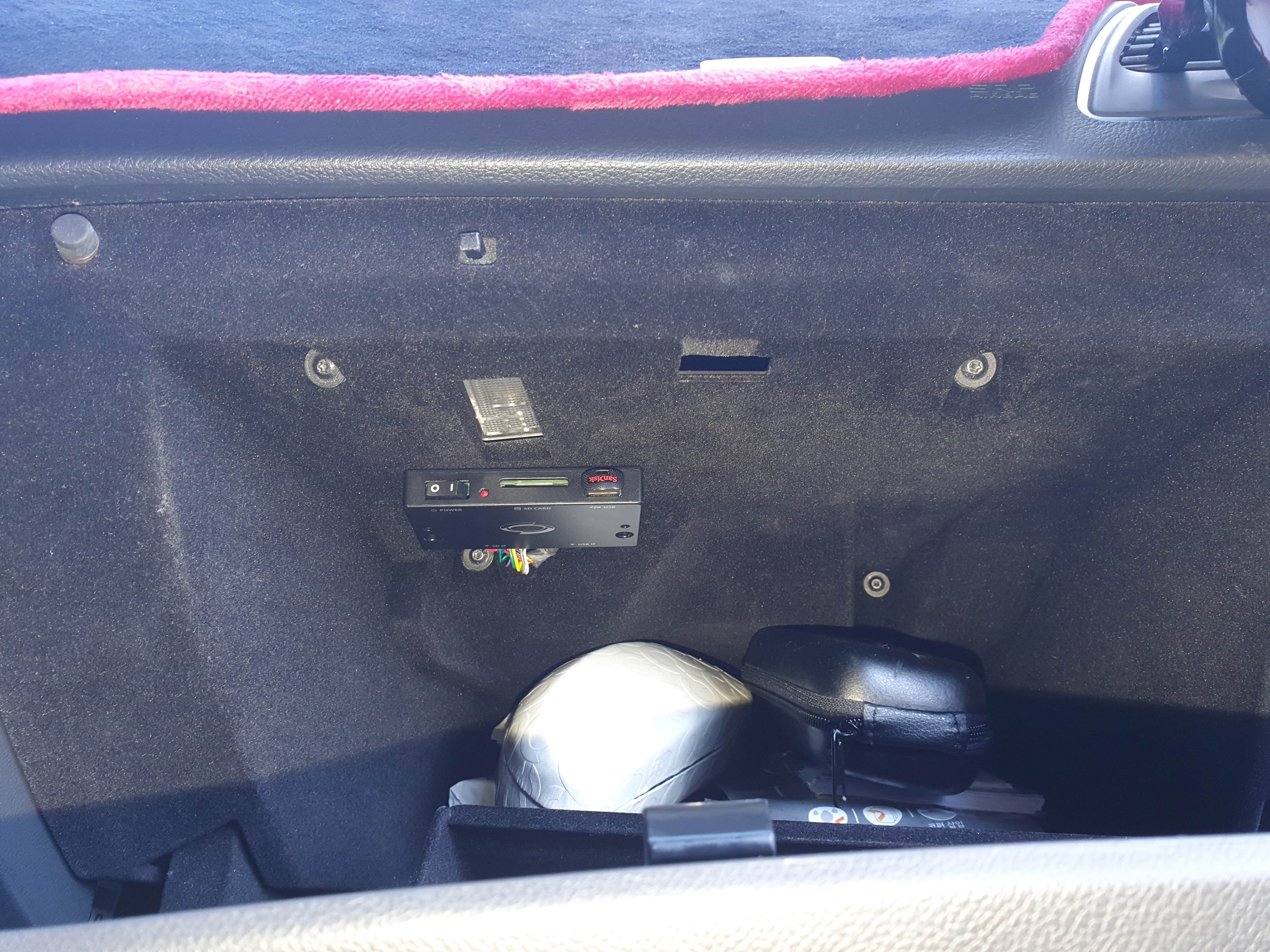 3. 보조석 수납함 오른쪽 싸이드 플라스틱을 제거합니다.