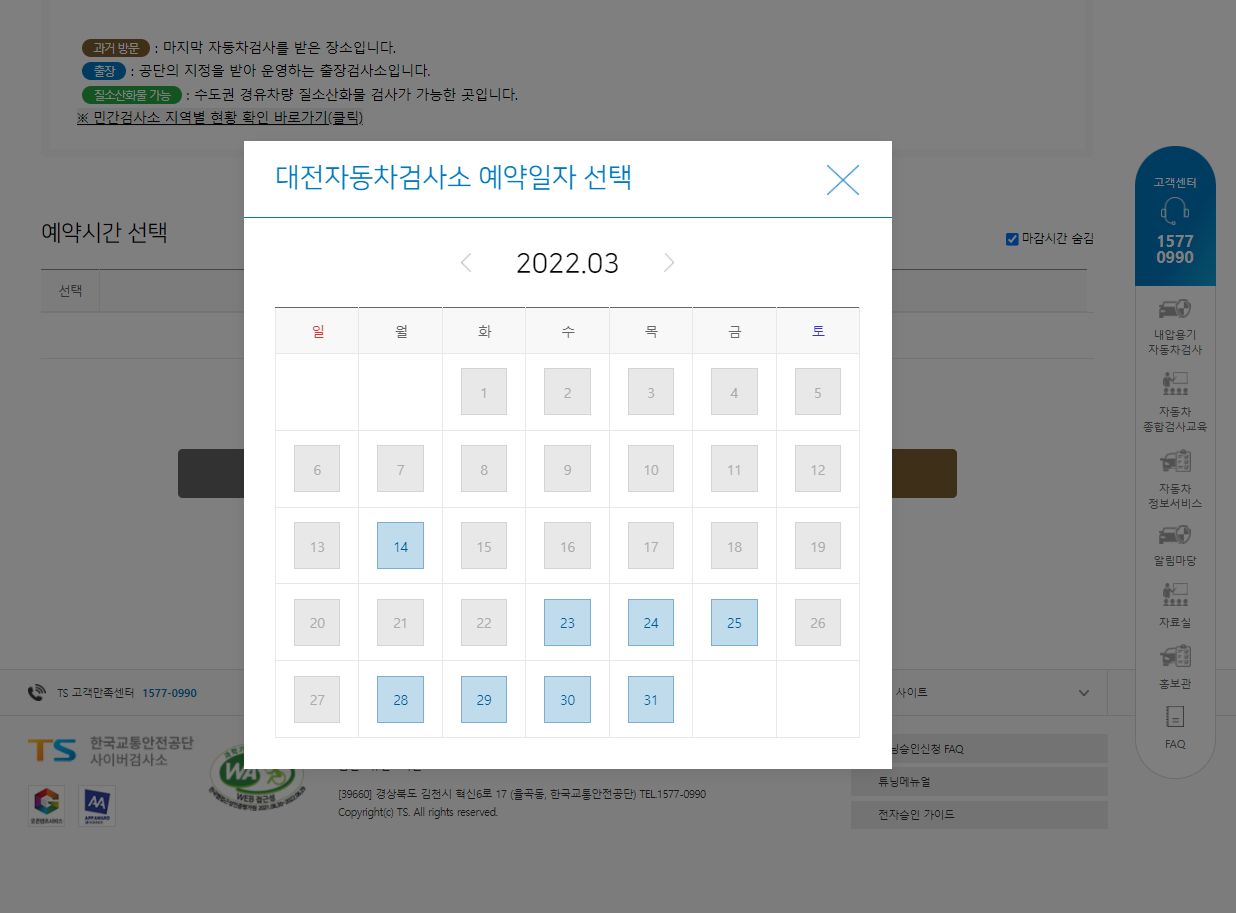 100% 예약제라서 대전자동차검사소는 이번단 예약이 완료 되서 담달에 예약 했네요.
