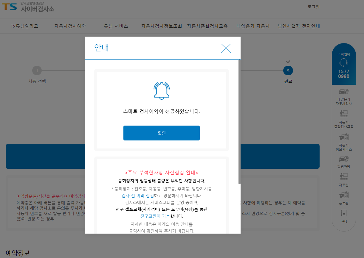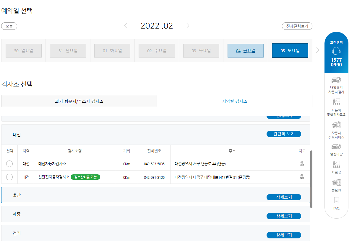 그런데.. 공단 운영 자동차 검사소는 100% 예약제로 운영되기 땜에 미리 예약해야하고..