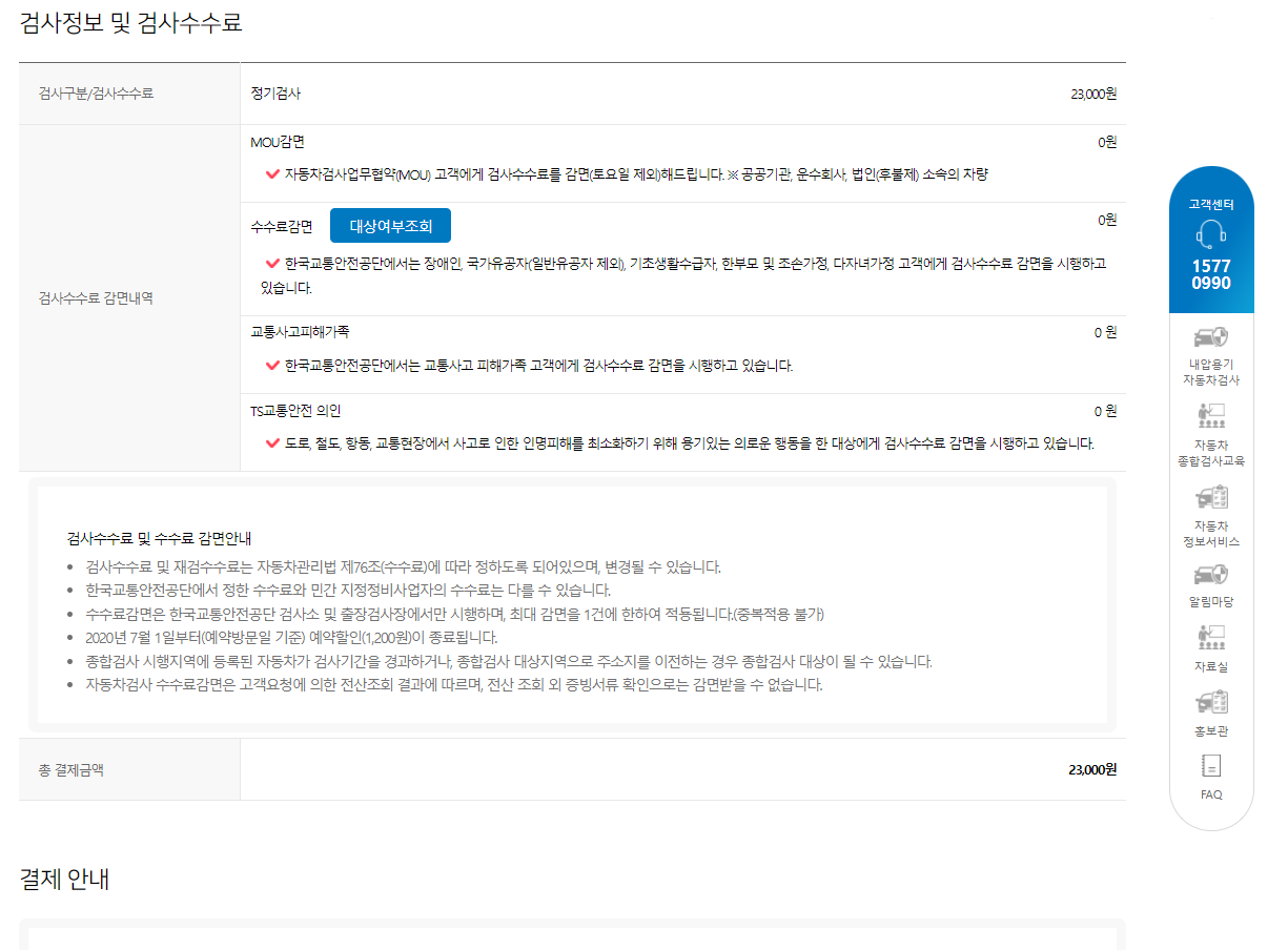 자동차 정기검사 비용이 23,000원입니다.