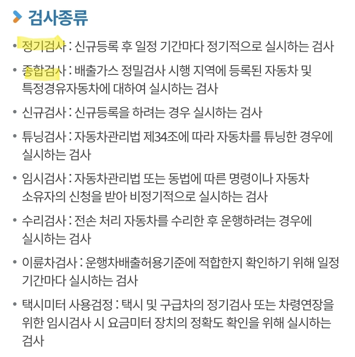 자동차 검사는 몇가지 종류가 있는데..