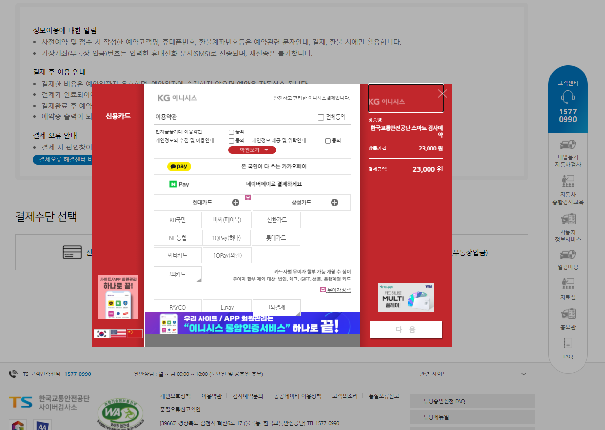 언능 예약하려고 한국도로교통안전공단 홈페이지에 스마트폰으로 접속을 하였는데..