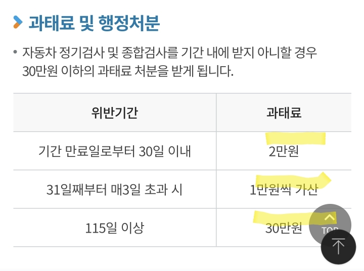 혹시라도 자동차 정기검사를 안받게되면