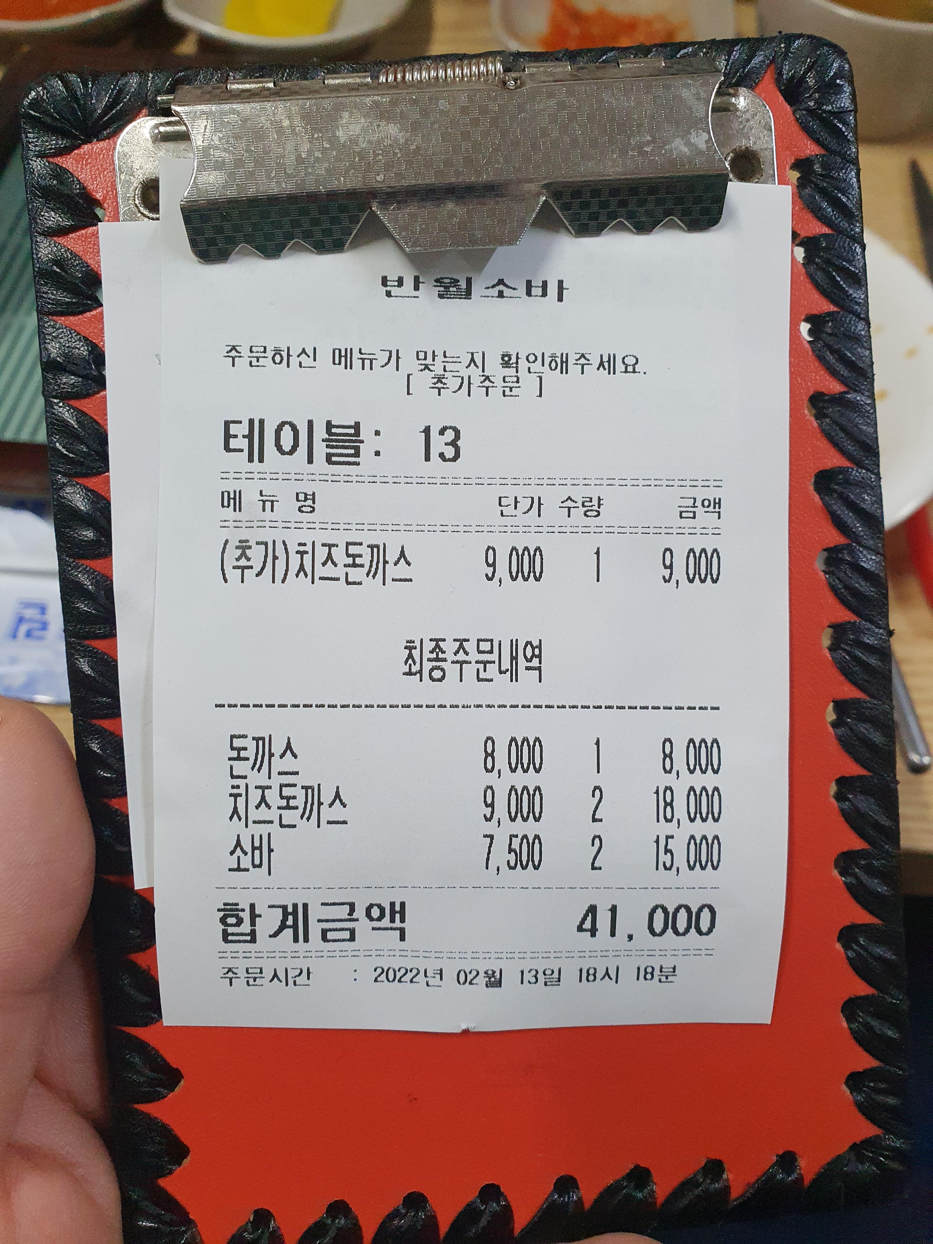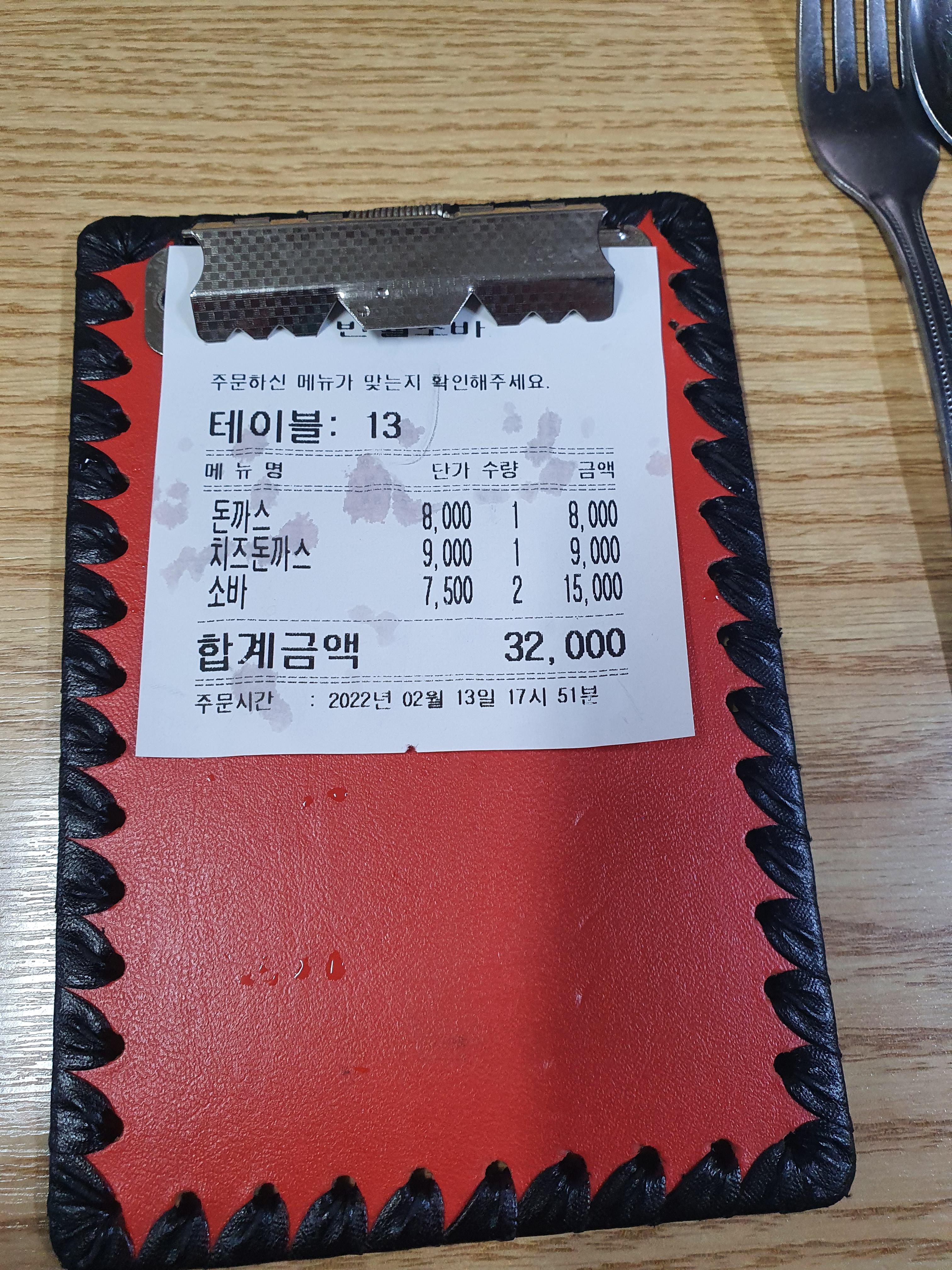 돈까스1개, 치즈돈까스1개, 소바2개 시켰습니다.