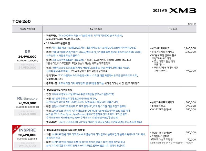 그중에 큼식이가 아니라 이번엔 xm3자동차에 관해서 가격표를 공유하러 합니다.