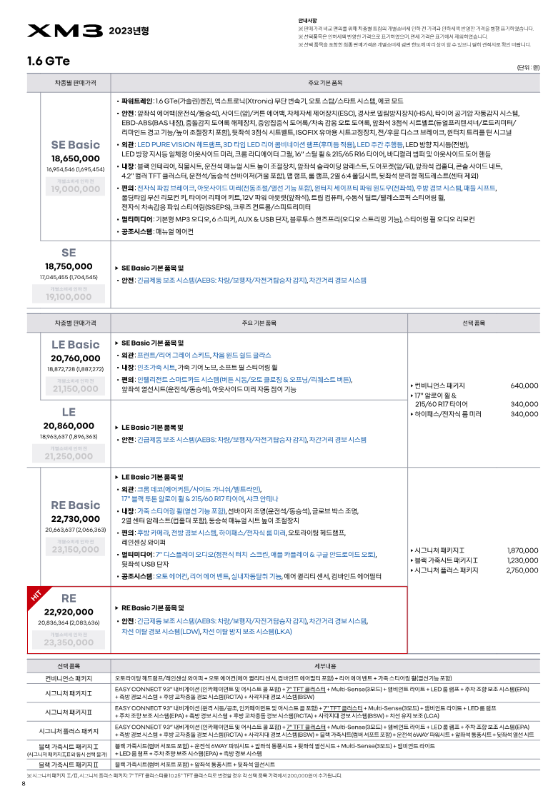 르노삼성차의 효자차종 소형 프리미엄 SUV XM3 가격표 공유(22.03.10.) XM3 PRICE LIST IN KOREA 10. MAR 2022