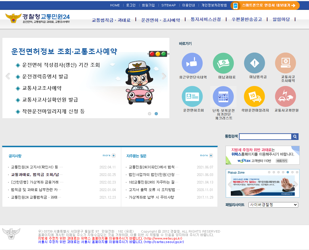 혹시나 해서 오늘 경찰청 홈페이지 이파인을 통해서 신호위반 여부를 확인할수 있나