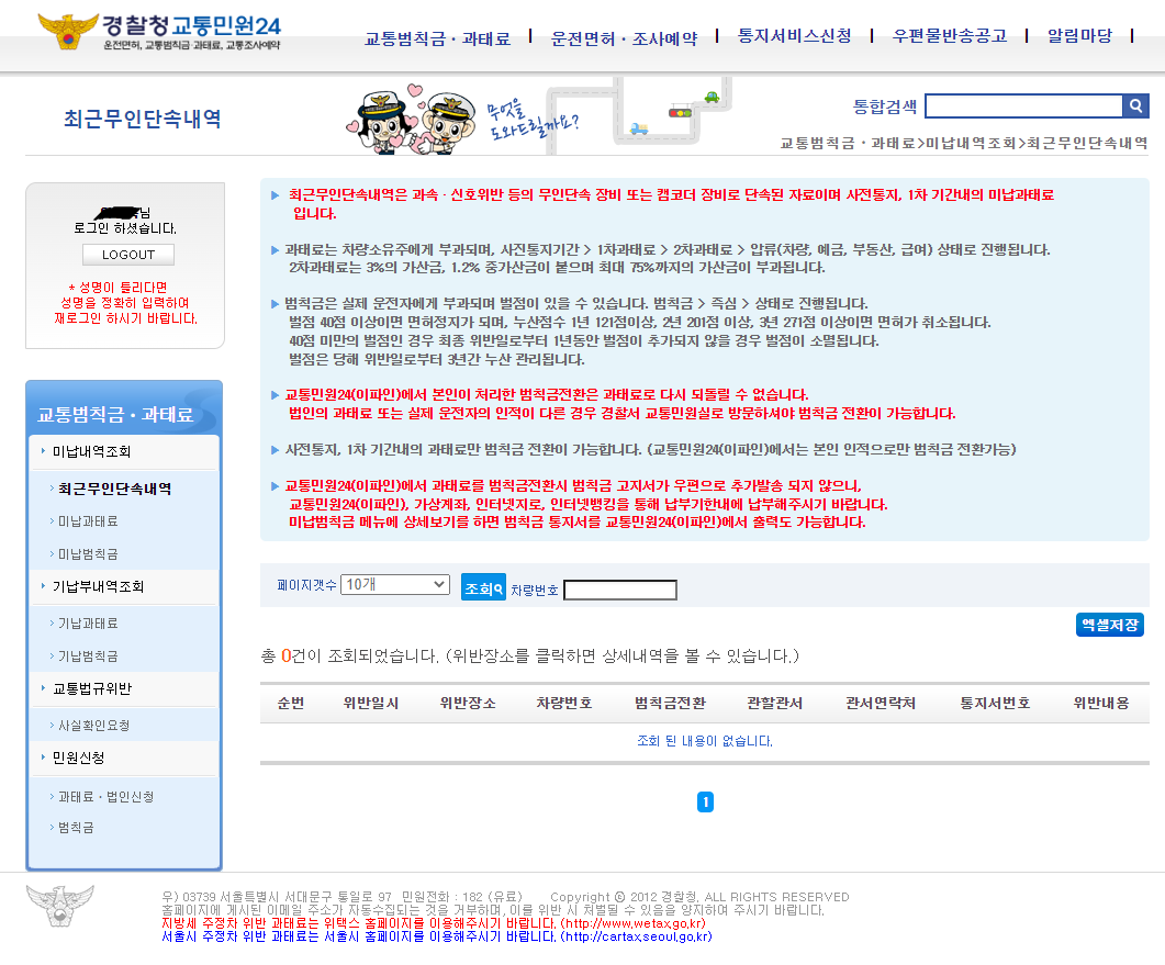 최근무인단속내역에 1일이 지난후 클릭해봤지만.. 아직은 걸리지 않았습니다.