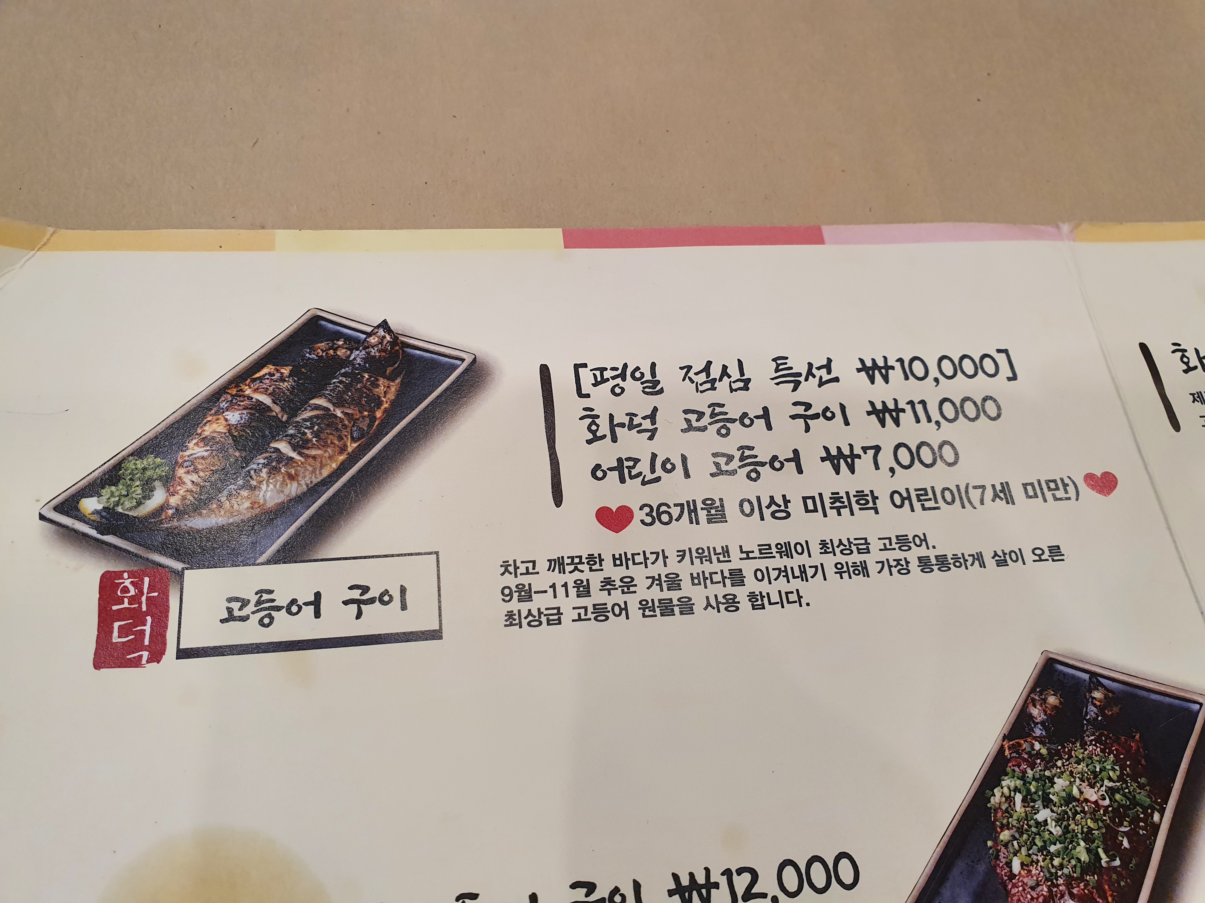 36개월 ~ 7살까지는 어린이 고등어 메뉴를 시켜야하고