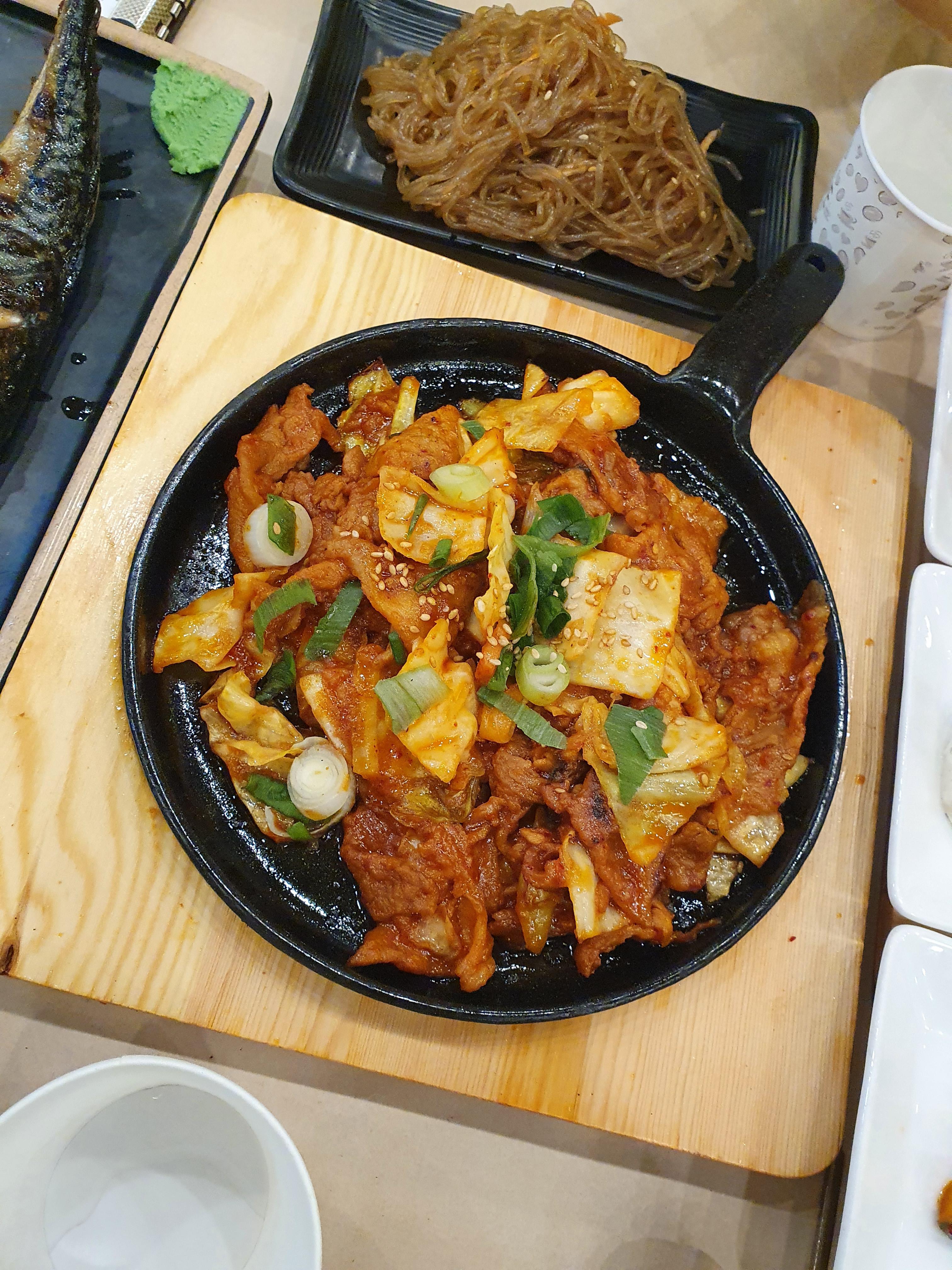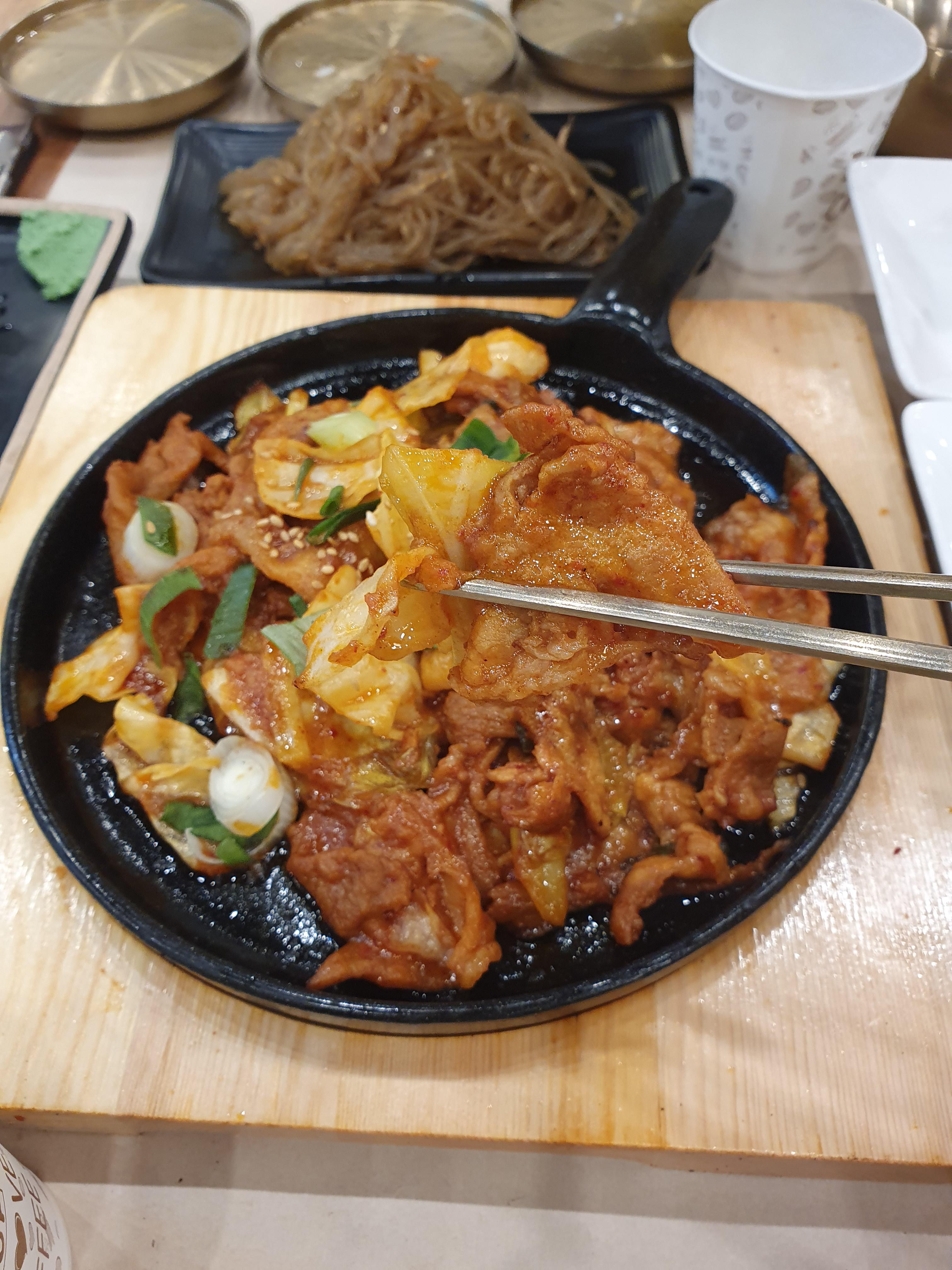 고추장 불고기는 이렇게 무쇠후라이펜에 올려져서 나와서 조금은 더 따뜻하게 먹을수 있게 나옵니다.