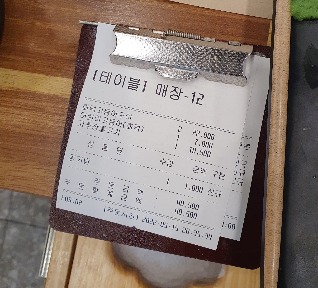 나중에 밥한공기 더 추가해서 1천원이 더 추가되었습니다.