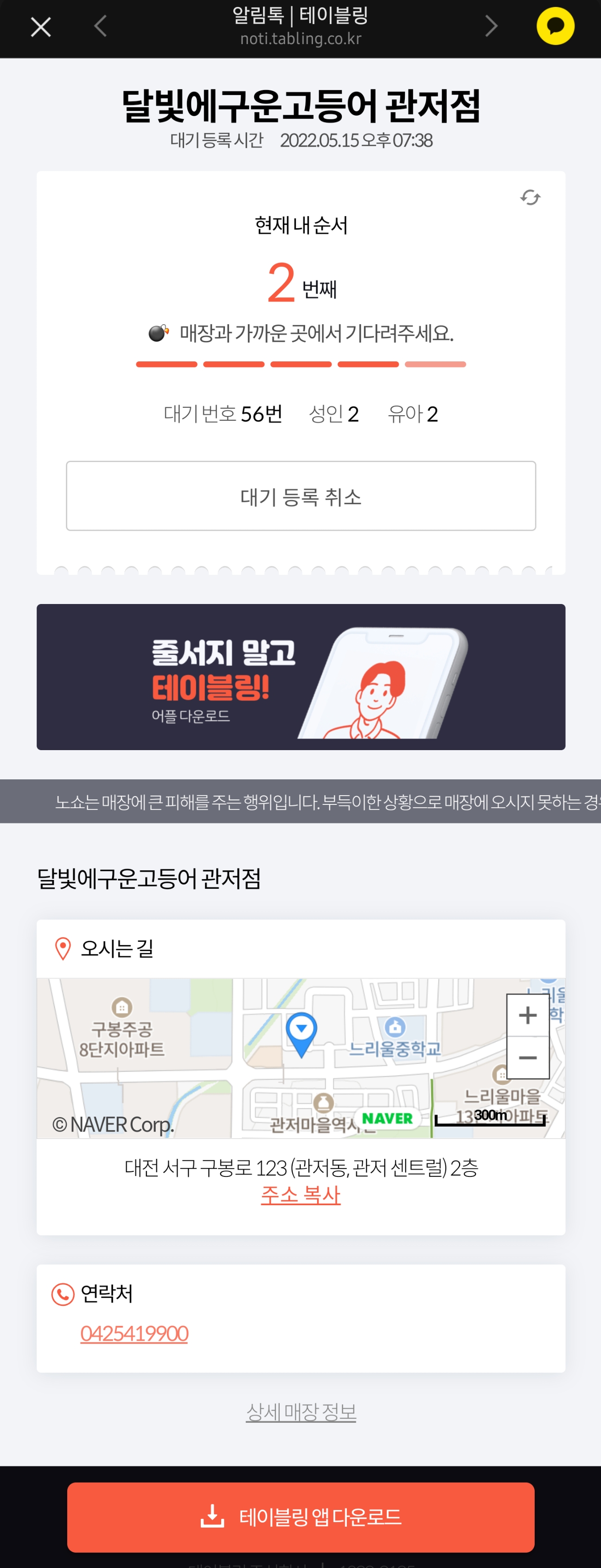 입구에 있는 테블릿을 이용해서 대기를 걸어놨습니다.