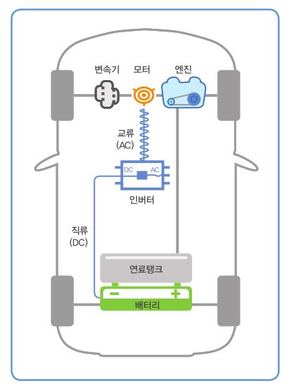왜냐하면 전기모터로만은 주행이 불가하기 때문이다.