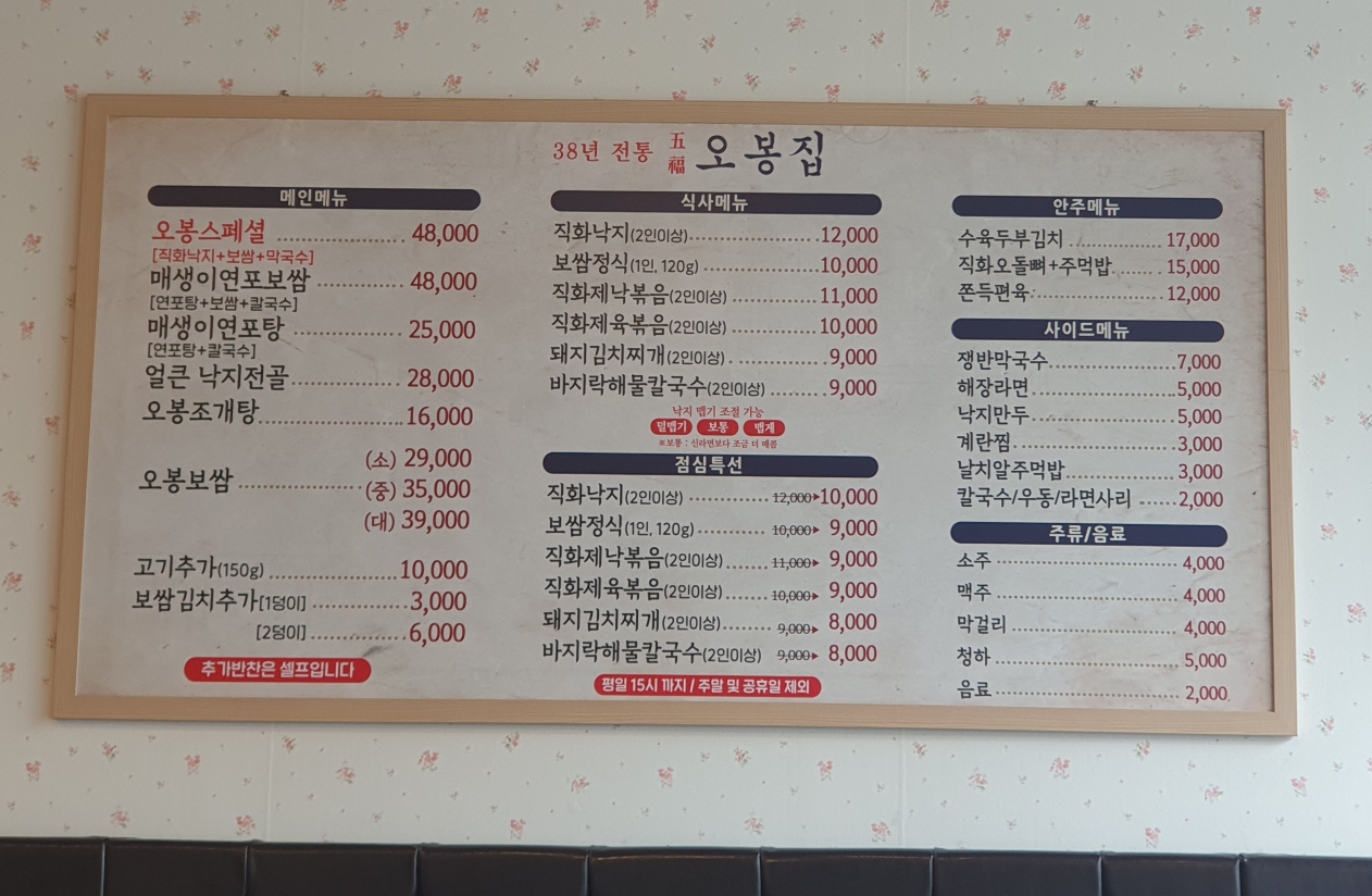 오봉집은 점심특선 메뉴가 있는데..