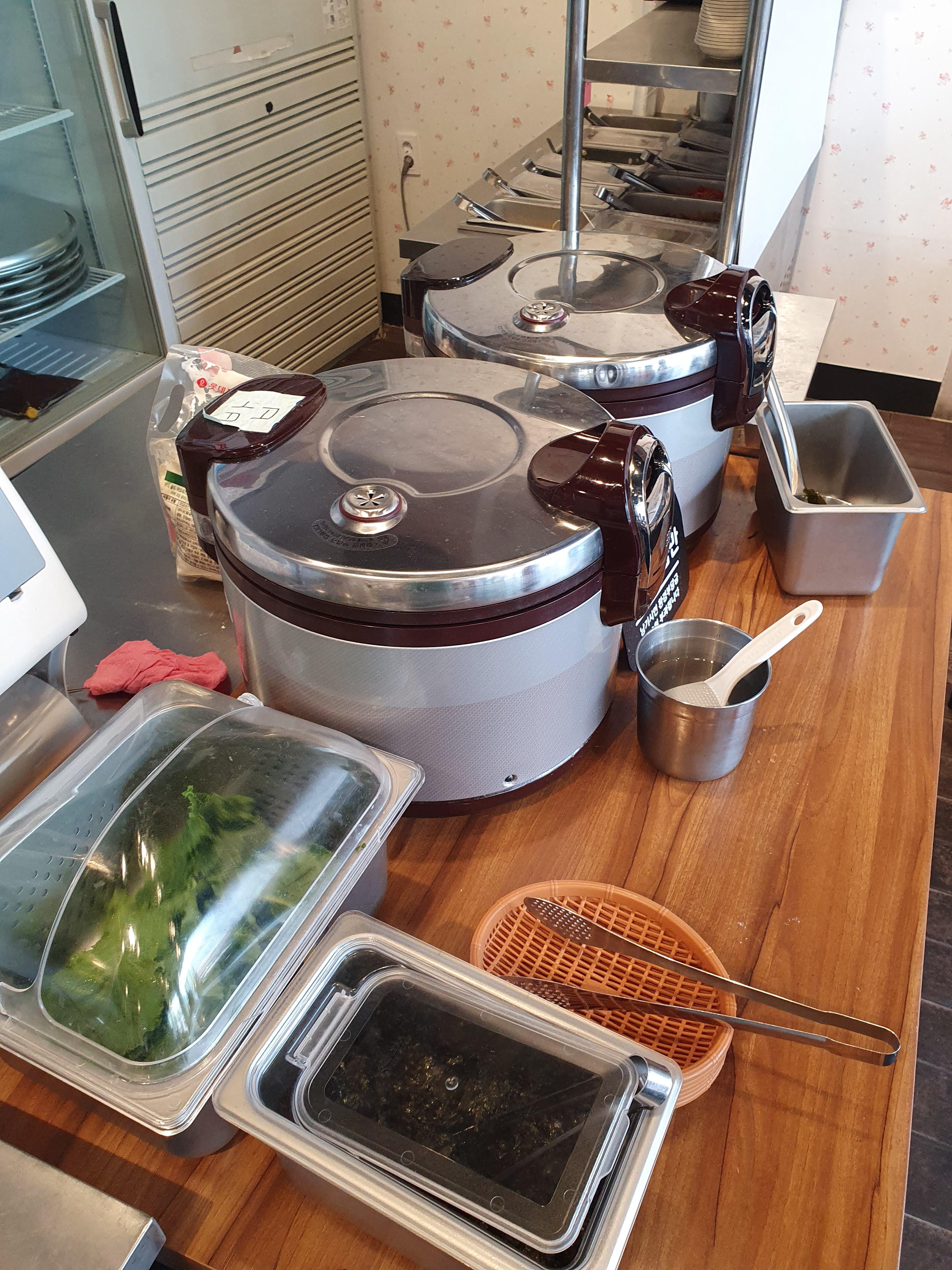 밥이 부족하면, 샐러드바 옆에 국이랑 밥 솥이 있기 때문에 편하게 퍼다 드시면 되서 좋습니다.