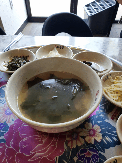 여러가지 반찬과 국이 나오는데~