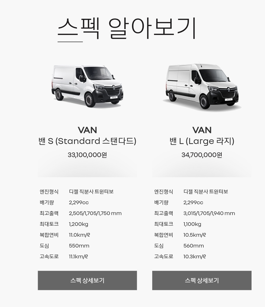 : 2.3 밴 S 디젤 직분사 트윈터보 / 2.3 밴 L 디젤 직분사 트윈터보
