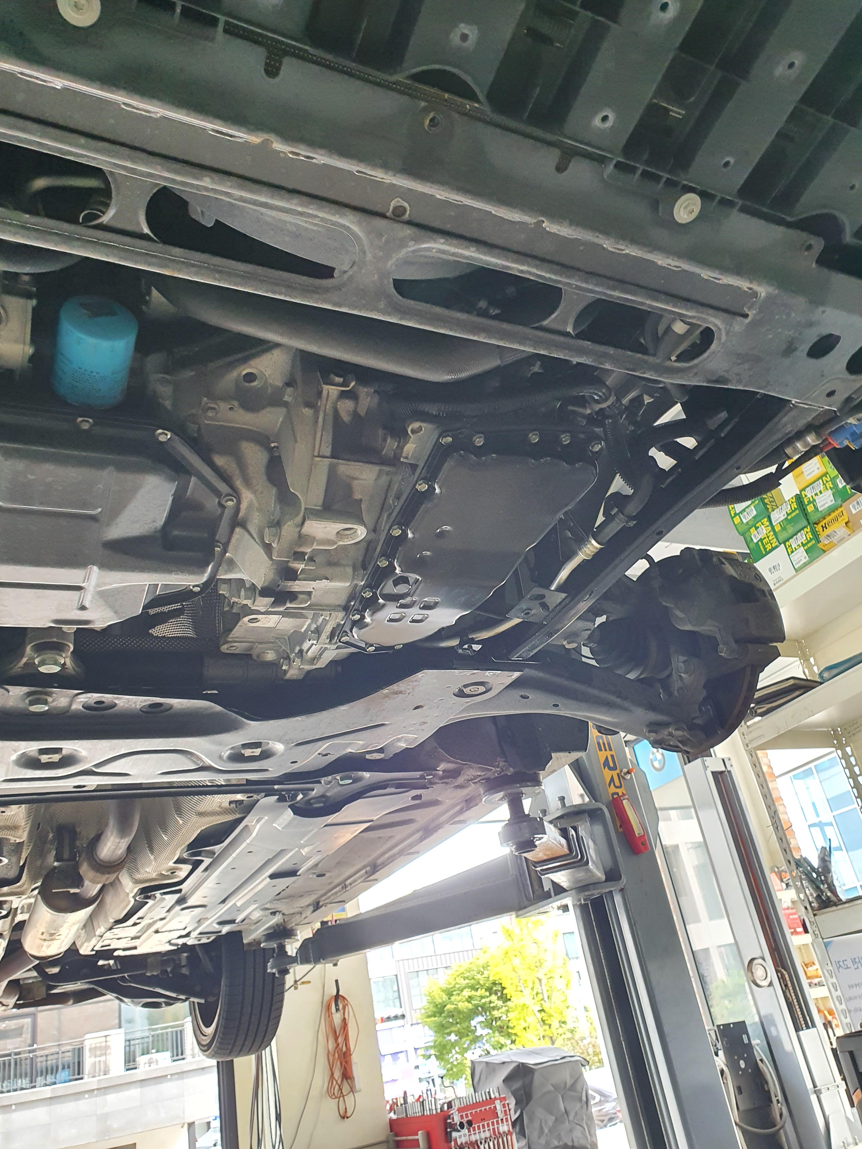 미션오일 레벨링이 완료되고, 혹시 누유가 있나 크리닝 하시면서 누유 확인해주시구여~