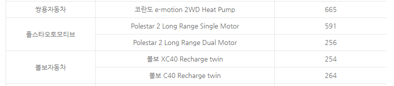8) 쌍용 및 볼보 승용 전기차 보조금