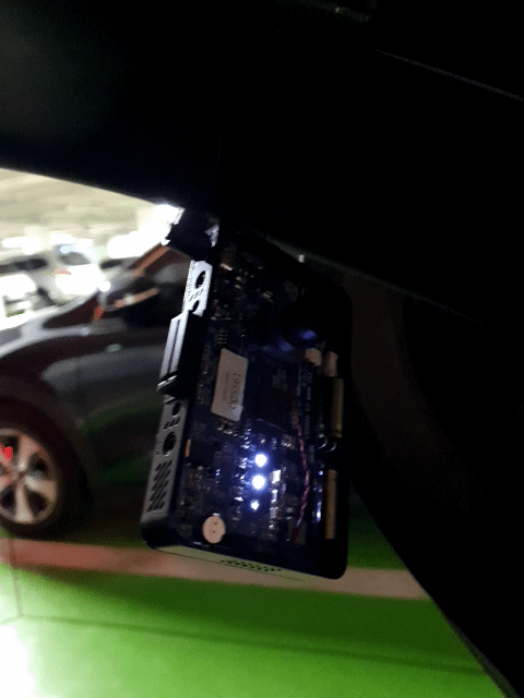 분해 되어 있는 파인뷰 LX2000을 들고 차량으로 내려가서 전원을 꼽아 봅니다.