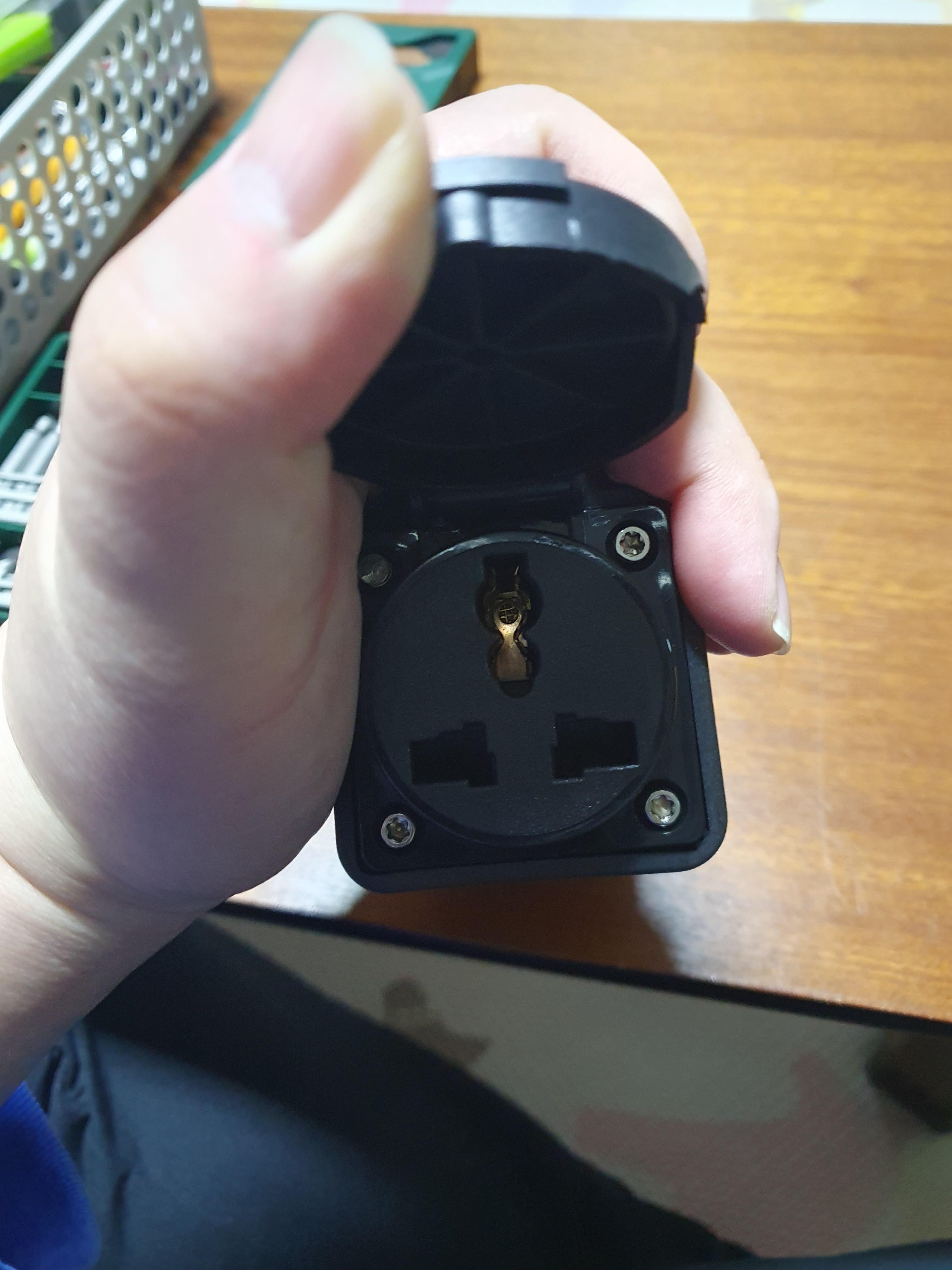 이건 새로 구매한 국내용 220V 방우 콘센트 모양입니다.