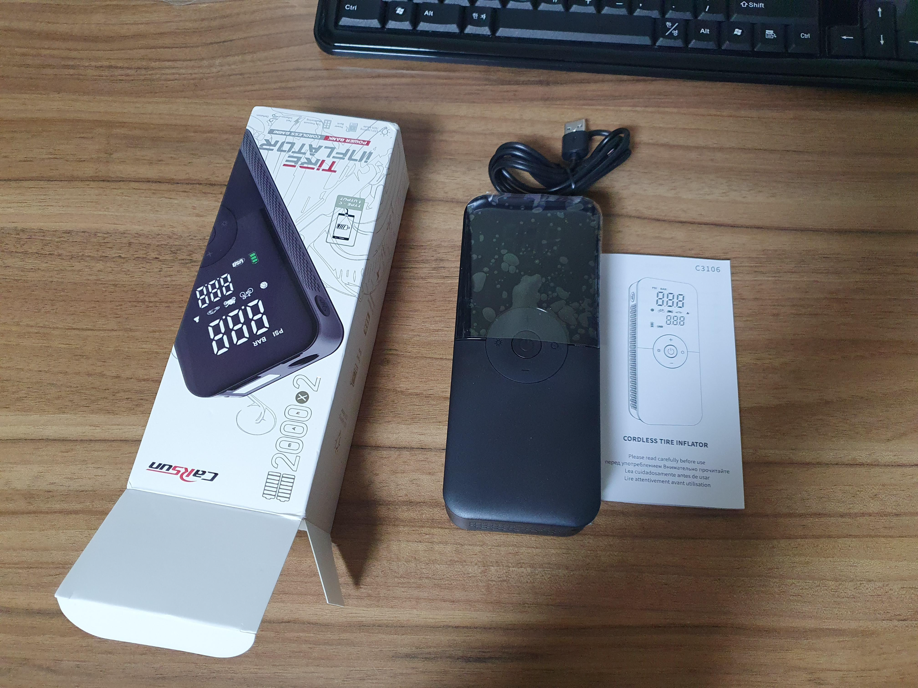 알리 익스플레스에서 타이어 휴대용 펌프를 하나 구매하였습니다.