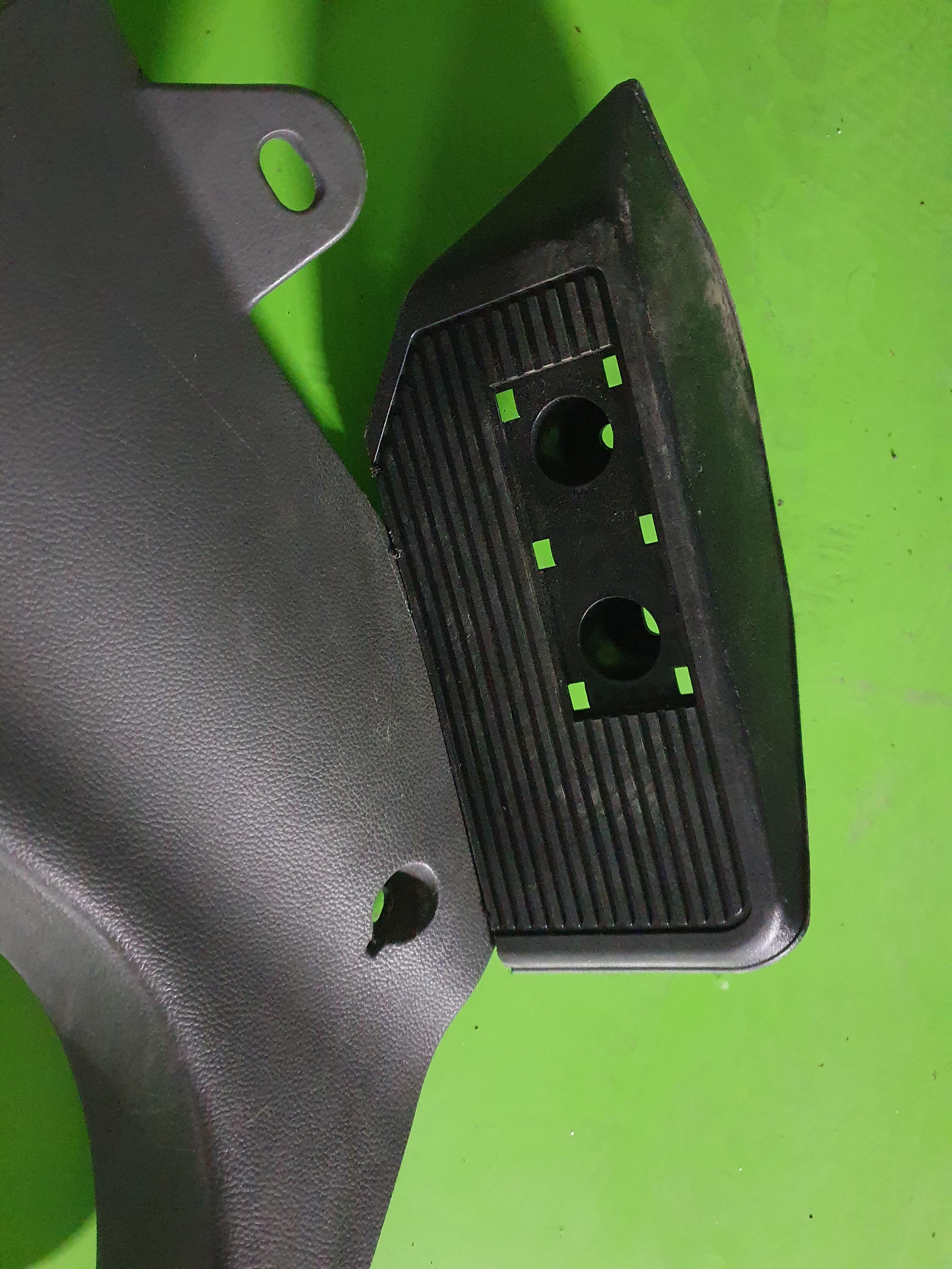 운전석 하단 도어스커프 몰딩 부분과 풋레스트 피스를 너눕혀서 피스를 박았습니다.