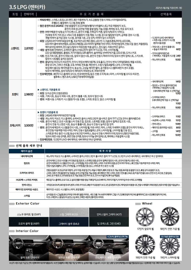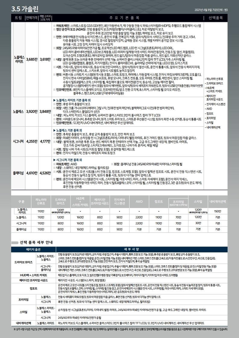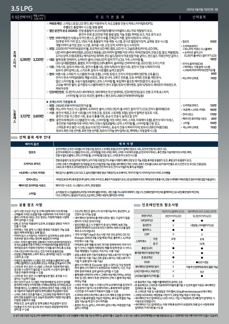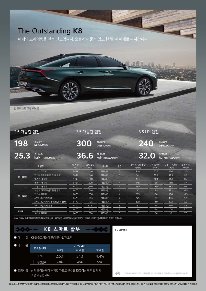 기아 KIA K8 카달로그 및 가격표 *(기준일:2020.04.20.) kia k8 price list in korea