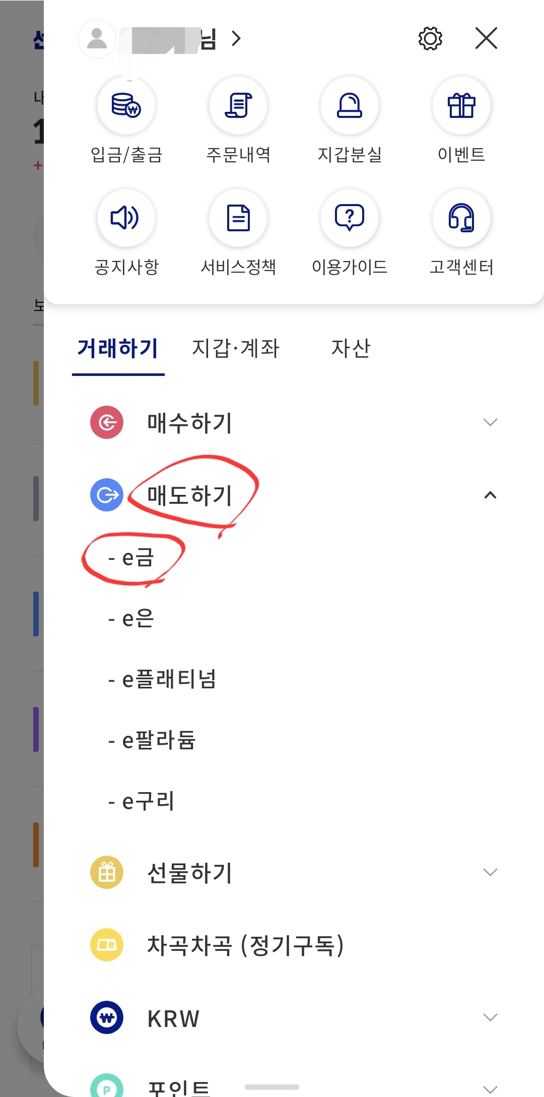 2. 매도 하기 - 금 을 선택합니다.