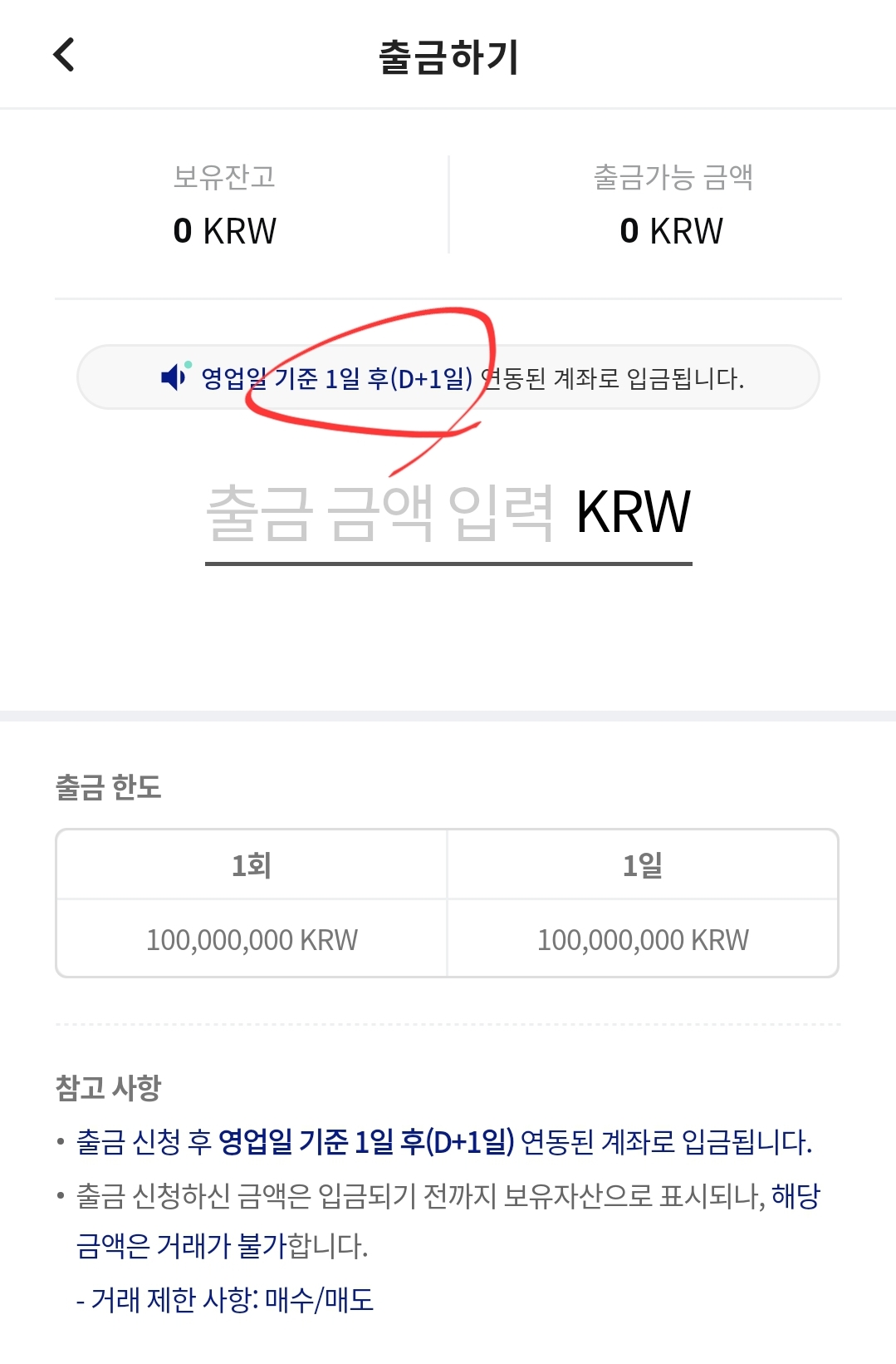매도를 한날 바로 입금처리는 되지 않고
