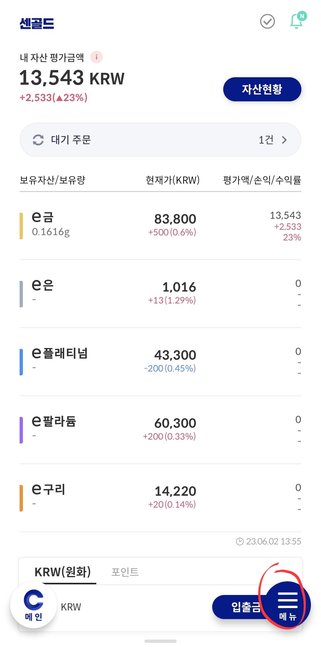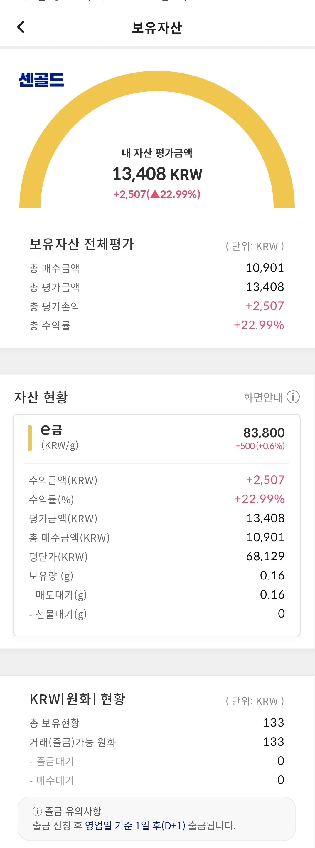 평일에 센 골드 앱을 들어가서 보유하고 있는 금을 판매하고 돈을 이체 해야겠습니다.