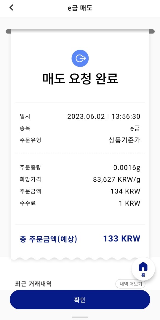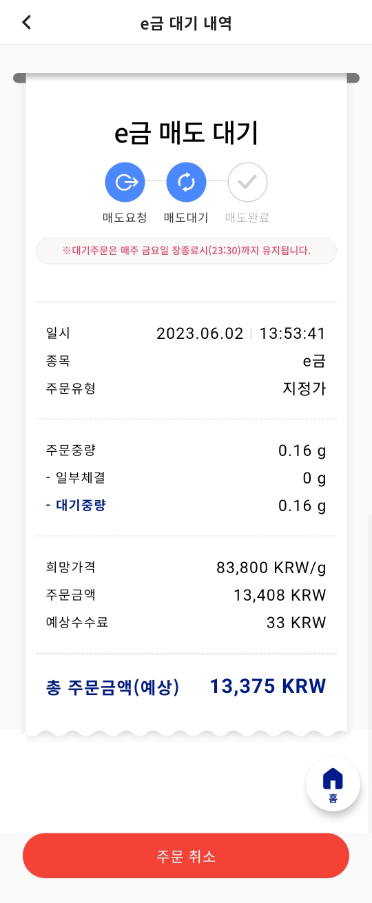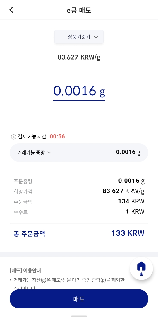 남은 금을 다시 판매하려고 매도를 시도하였습니다.
