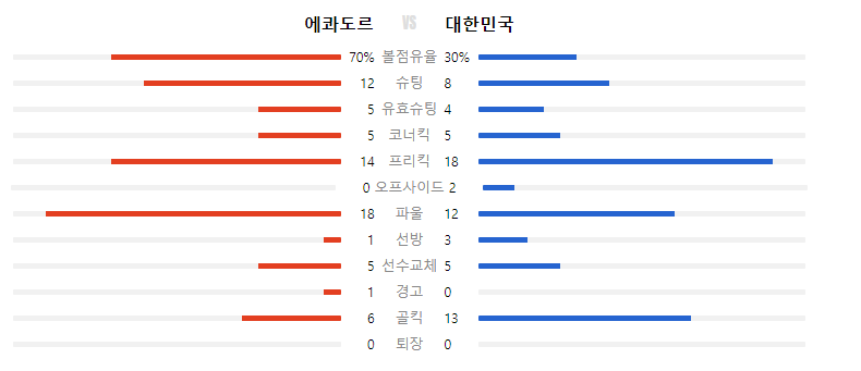 8강경기 경기지표 대한민국 vs 나이지리아