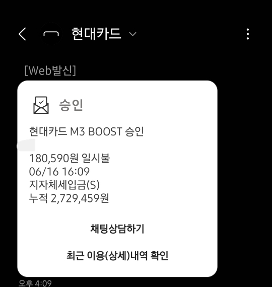 일반 카드 결제되듯 바로 문자가 온다.