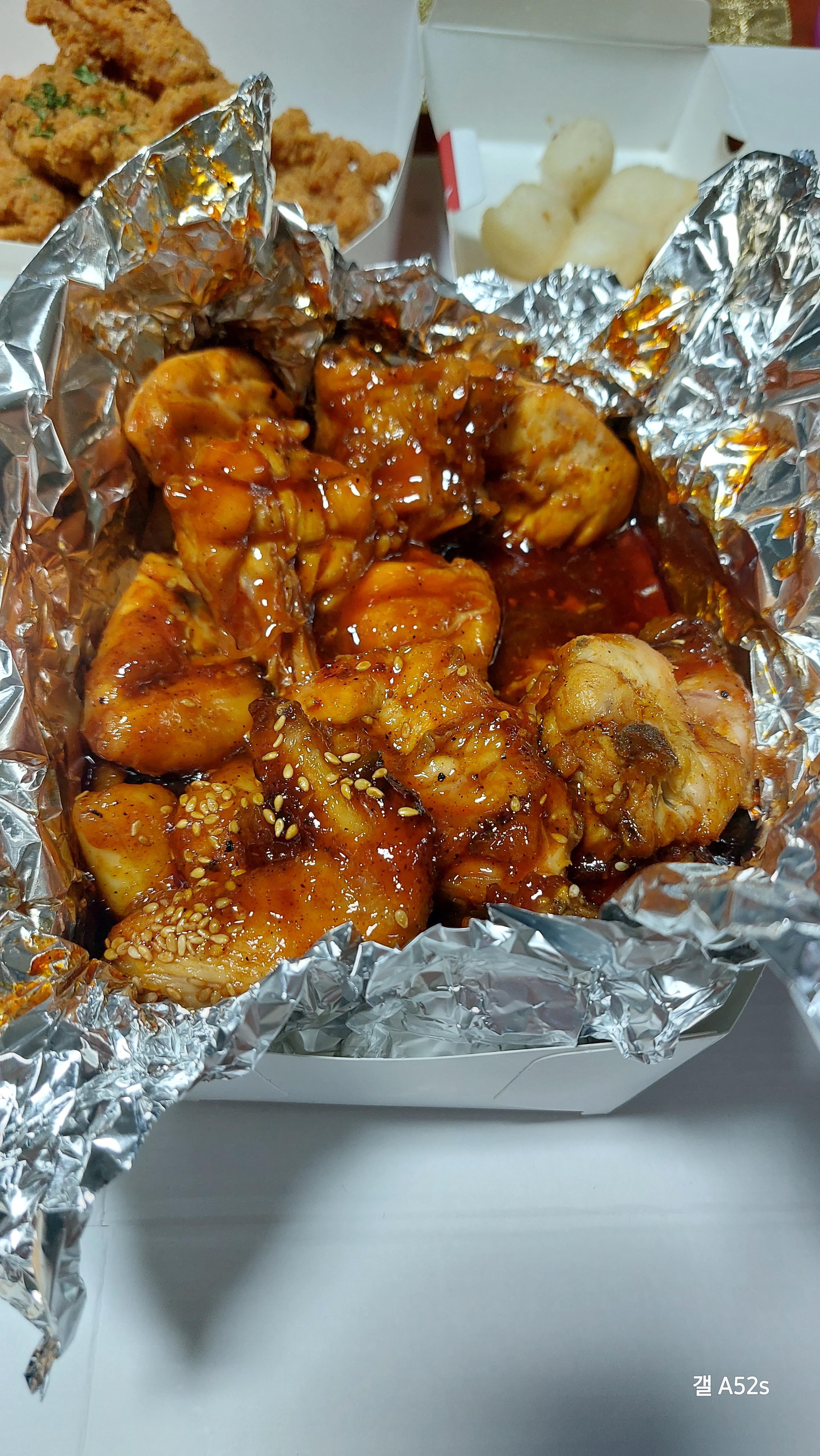 약간 매운맛 양념 숯불치킨을 시켰지만,