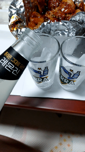 생각보다 꽤나 매운편입니다. 그래서 집에 있는 순하리 레몬진을 갖고 왔어요.