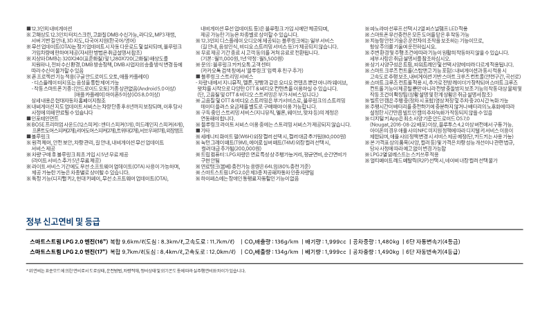 | 연비 (1리터당/거리KM) | 복합연비 12.6 KM | 복합연비 9.7 KM |