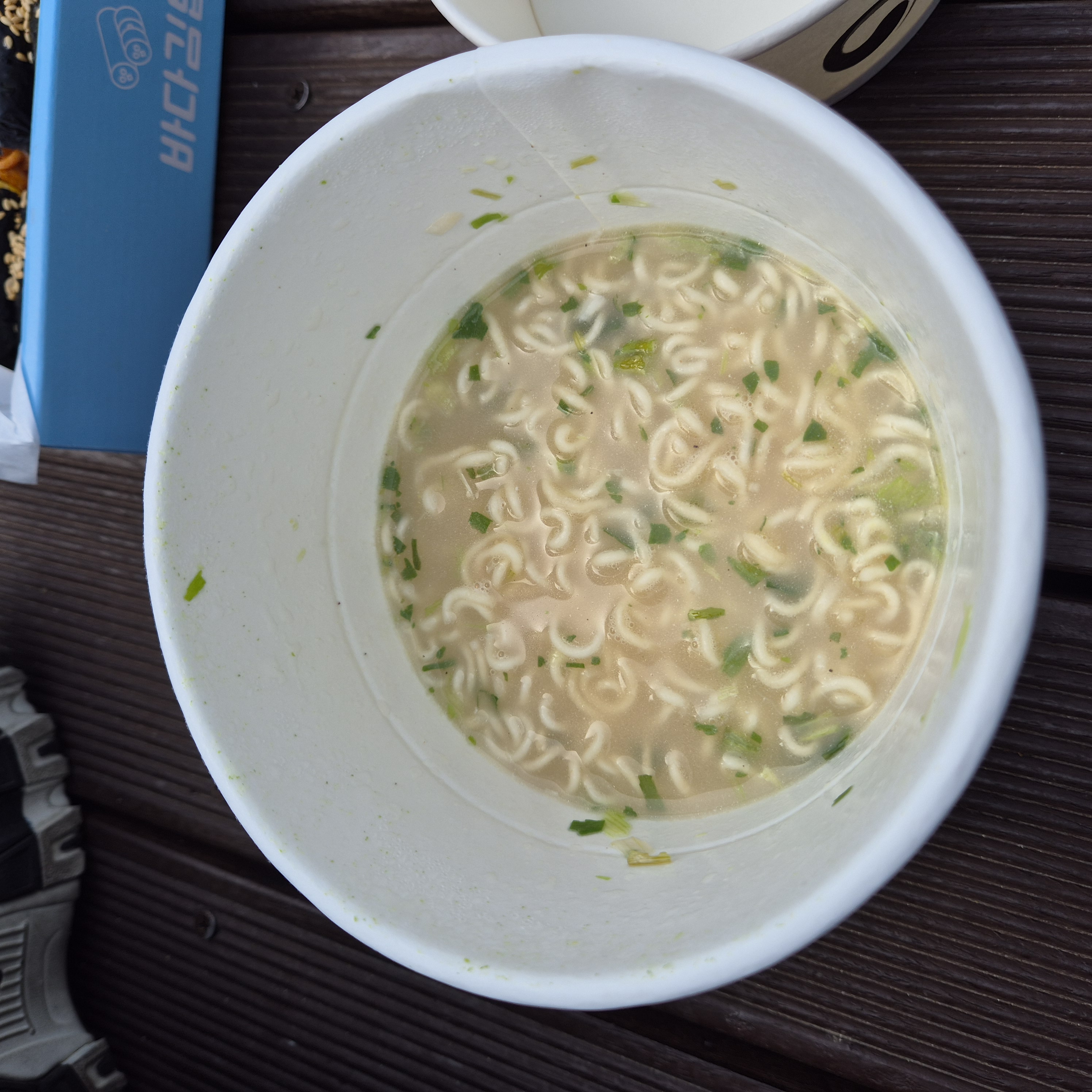 근처 편의점에서 사리곰탕을 또 한그릇 물에 말아서 가지고 왔습니다. ㅎㅎㅎ