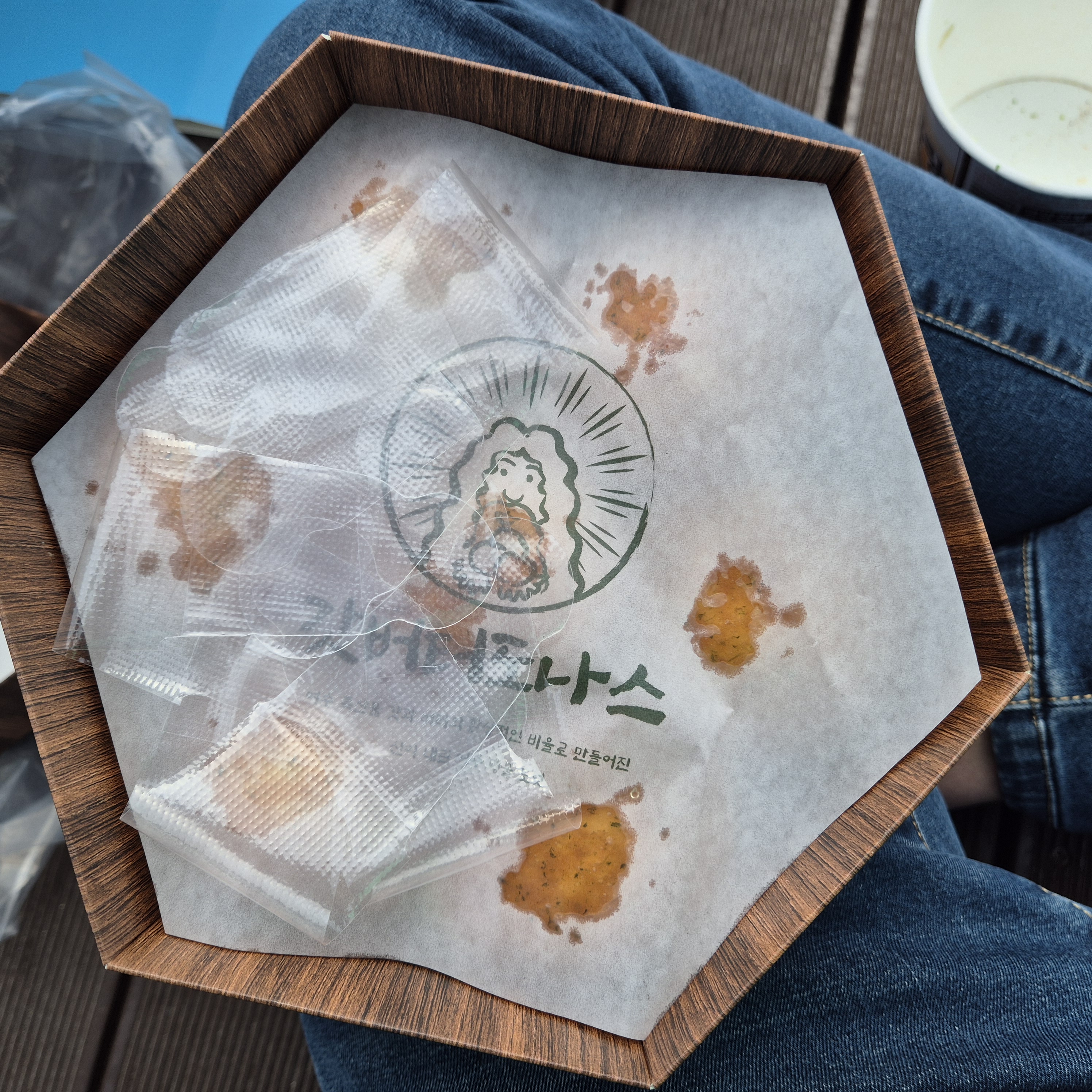 이순신 광장에서는 앉아서 먹을수 있는 데크가 있거든요!