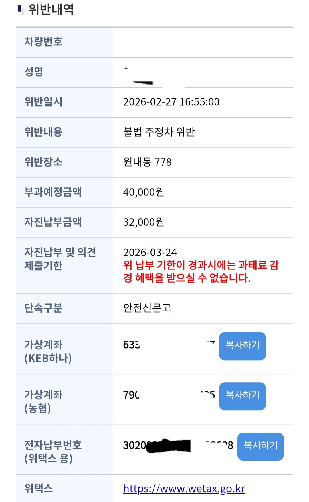 대전 원내동 주차단속 걸림 빨래방 가서 잠시주차했더니.. 찐짬뽕과 cu편의점 길가 주정차위반 찍히니 조심하시길